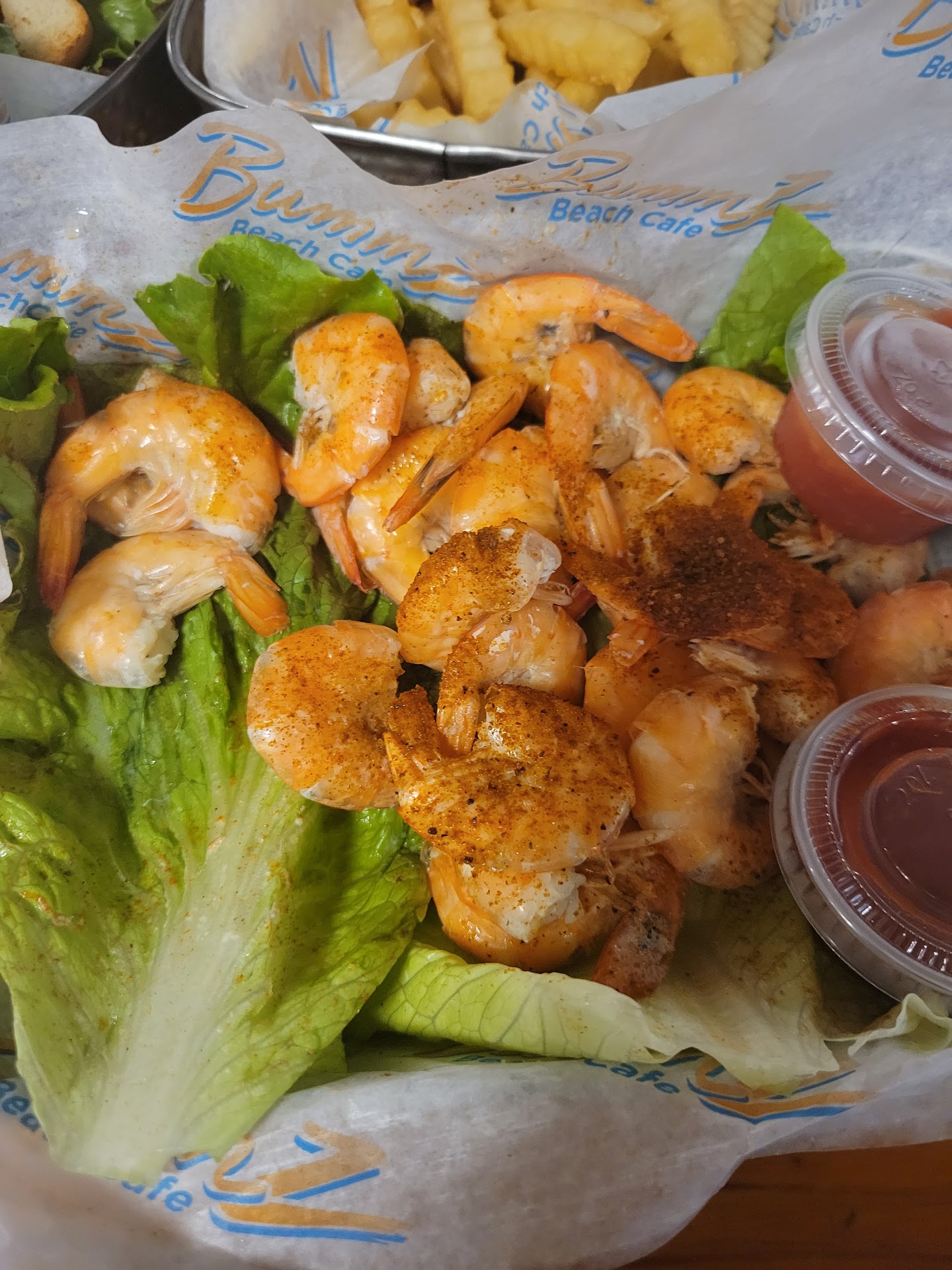 We ordered the buffalo shrimp with fries and the grouper fingers with fries and a side of coleslaw. The portion sizes were impressive, especially with the fries. The fries came in such large portions that we ended up wasting an entire order, as we could have easily shared just one. A heads-up from the server about the generous portion size would have been helpful and could have prevented this waste of $$ and food. The fries themselves were bland, no seasoning at all so i had to add ketchup to liven them up. The buffalo shrimp were tasty, though they weren’t deveined, which led to a bit of an unpleasant surprise for me—getting a vein stuck in my throat and almost choking was definitely not it. The coleslaw was refreshing and well-seasoned. The grouper fingers, though not sampled by me, were reported to be good by my dining companions.