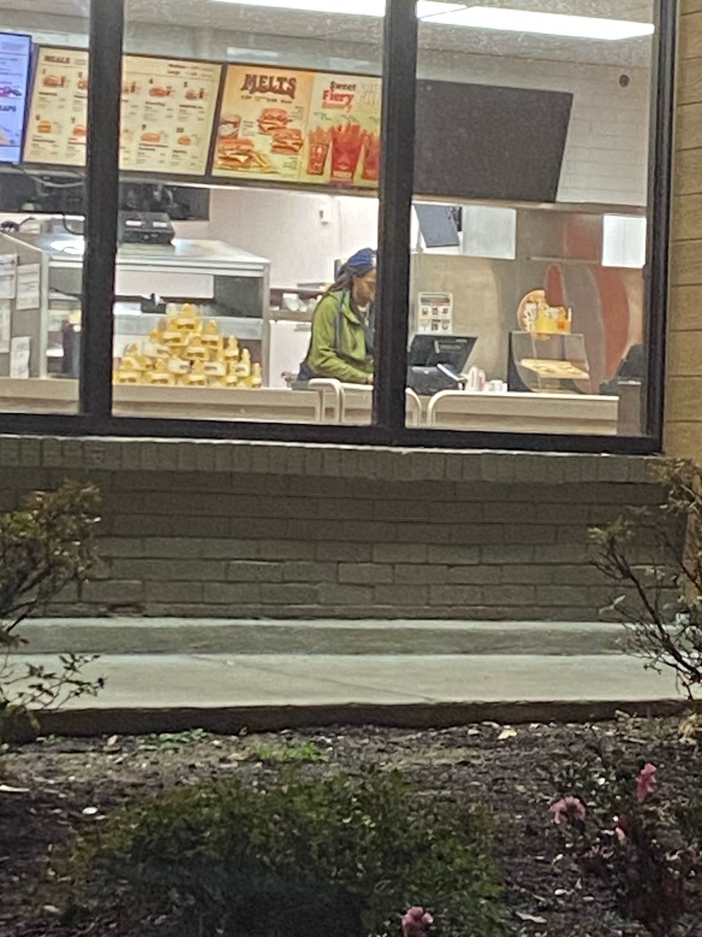 Then I noticed a group of roaches scurrying outside their back door. I considered leaving but felt the least I could do was cancel my order out of respect—having worked in fast food, I know wasted food often falls on employees. After another 15 minutes, I got out to see what was going on, only to find the woman in front of me yelling at staff. She sped off after they started cussing her out. When I pulled up, instead of taking my order, the employees went outside and started a full-blown fight with her.