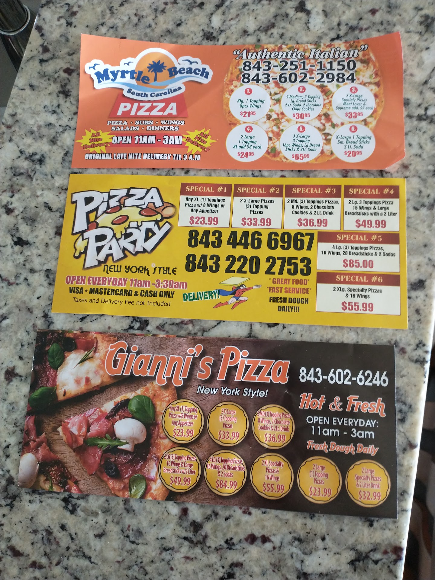 Read moreTerrible!!!!! When I placed the order they seemed fine, got the food it was pretty much all wrong. They claimed it to be because the menu I was looking at was wrong, which is their current menu. Salads didnt have cheese or meats as listed, didn't get dressings I asked for, or appetizer I asked for. Got fried mac n chz instead of mozzarella sticks, the fried mac n cheese wasn't even on the menu. So I called to let them know and see if it could be fixed and the person who answered was rude to the max, and said "oh that's what I wrote down and you're looking at the wrong menu".. Um, well sorry you " wrote it down wrong", thats no excuse, and you're menu is obviously wrong.. He didn't offer to even correct it or refund me and hung up on me. And the pizza which was made as I ordered basically sucked. So for nearly $50 I do not, repeat DO NOT recommend ordering from here. And the website says best pizza in Myrtle Beach đ that should have been a hint. Oh and the delivery guy was rude too.. terrible all around. Probably the worst food experince and customer service dealing in my life and I've worked in the food industry...