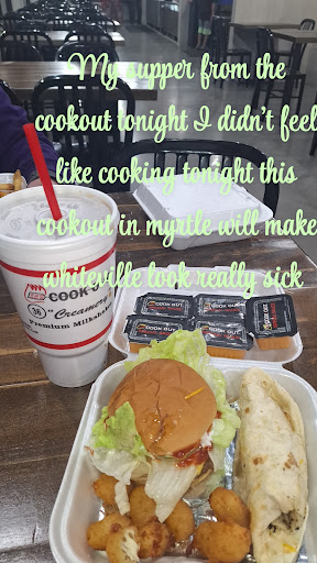 Ā Ā Ā Read moreLet me start off by saying I love the cook out used to eat there twice a week at work. I usually go to the one in North Myrtle Beach. I was so late getting home from work and going to vote I had decided to try the new cookout in Carolina forest on fresh drive. Letās start with the rude person taking your order. I ignored it it was busy. I proceeded to place my order a burger with bacon LTO and extra pickles. I stressed to please make sure there was extra pickles on the burger. I proceed to the window to get my order. It was dark out I didnāt have my interior lights on I took the drink from the middle of the cup so I would not spill it, put it in my cup holder. She handed me my burger and sides. I had placed it on the seat next to me.( I had asked for a bag just in case the woman ignored me smiled and closed the window on me) I live less then 3 mins from cook out. I pulled into my place and went around to the passenger side door to grab my meal! I went to pick up the container that was not closed correctly, it was broken where the tabs were so as I picked it up and turned the container broke apart and 85% of my meal was now on the ground. So I picked up my drink and you guessed it , they never put the lid on it properly and now my car seat is soaked in coke. My burger was saved as it was still wrapped in foil! I thought oh thank god I still have dinner and wonāt have to go back out. It was so gross. My burger was so over cooked it was hard to swallow, the bacon was like chewing on a gummy, the extra pickles there was one. And the tomato was the top of the tomato with the stem part still attached. I asked for bbq sauce on my burger and there was so much the bun felt like it was soaked in fluid it was that soggy. As I stated at the start of this rantā¦. I love cook out but I will never ever go to...