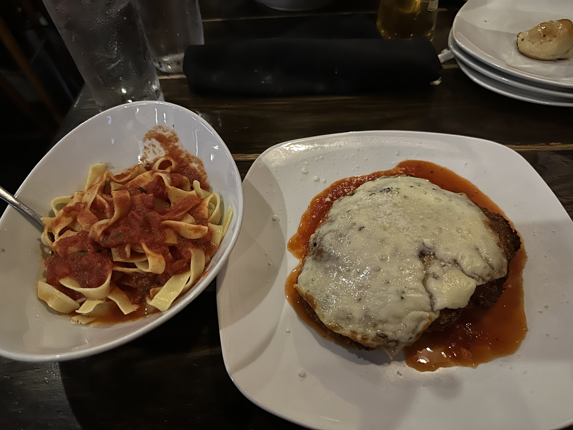 We chose this place for our family Easter dinner based on its reputation I remember from years ago and the amount of positive reviews. Our experience wasn’t the best though unfortunately. We spent $200+ for a family of four and nobody liked their dishes. I started with asking for a single macchiato and I was brought a shot of espresso with no milk/foam, so I just asked for cream which was brought out in little diner packets style. My cocktail, the gin fizz, came out in a regular water glass and was room temperature, the egg white foam was not dense and creamy it was about 4” of light bubbly foam, I asked for ice to cool the drink down. That drink would be better served super cold in a coupe glass. The cherry tomato and burrata appetizer was one of the better things we had although hot tomatoes in a cold salad was a little jarring at first. The garlic knots and dip were tasty. That brings us to the entrees. They were very bland. The Chicken Marsala was sweet and hardly any savor. The chicken parm tasted like oil and the cheese was barely melted on top and the marinara was bland, so I asked to try a little bolognese, maybe just a ramekin or small bowl I said, remarking their wasn’t much marinara on the plate and it needed more flavor so he brought a full side and charged us $9 for it. The spaghetti squash dish was also bland, only the chicken was eaten out of it, and if the server was good they would notice and maybe help us out with something else. The server was ok, but the steps of service are terribly lacking. Our table was dirty the whole time, we had to hand him things not being used anymore to make sure we could have a clear space rather than him taking initiative. I never got a knife replacement for my entree and just ended up cutting the chicken with a fork the best I could. In the end it was a disappointing experiment/experience for our Easter dinner together and our first...