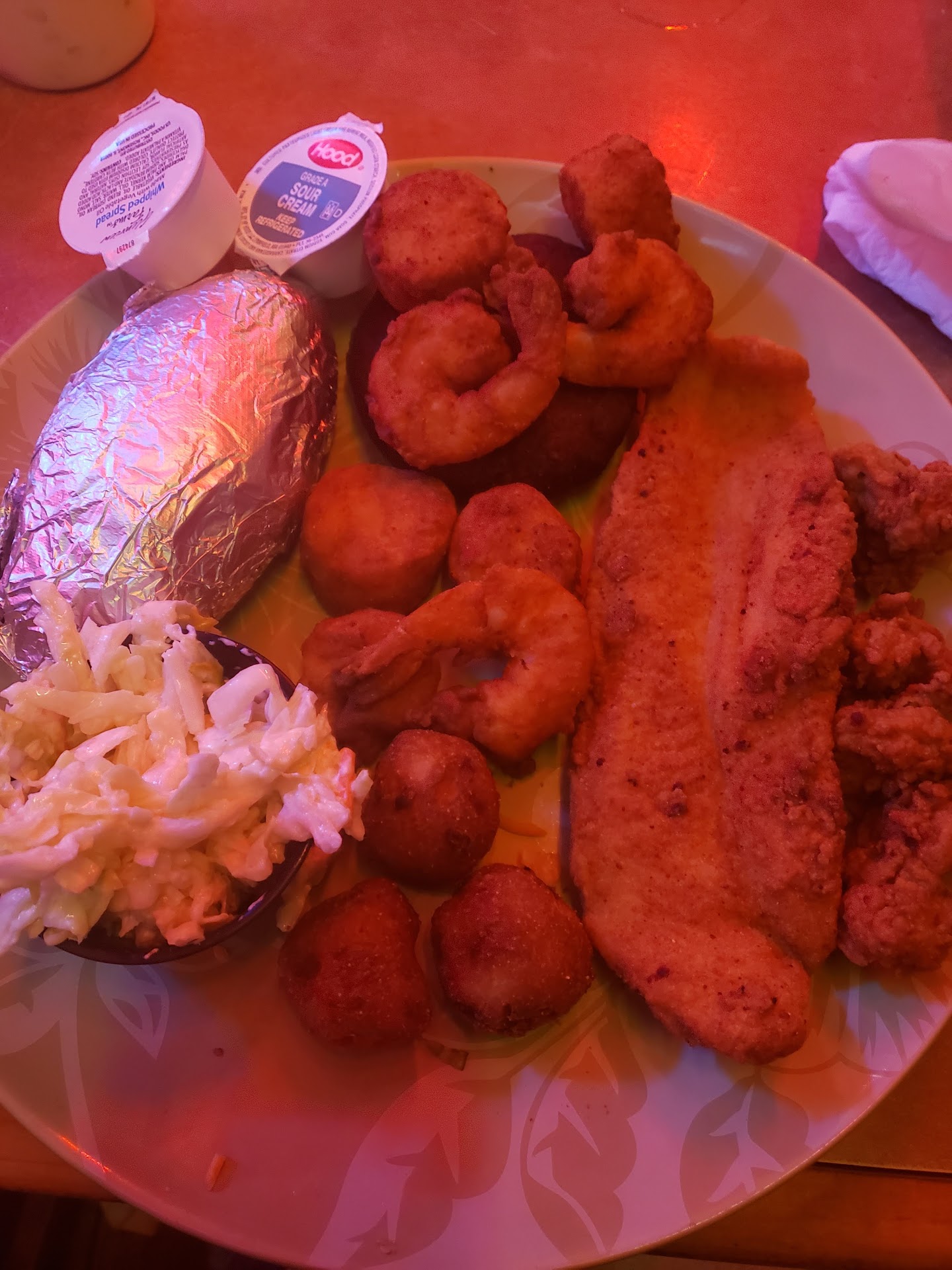 With the cool breeze blowing under the warm sun my mom and I sat eating grilled oysters and a fried oyster salad. The food was delicious and every bite was super yummy. My mom barely shared her grilled oysters as they quickly disappeared from her plate. I got half a bite, which had a nice Cajun seasoning to it; but the fried oysters were my jam.