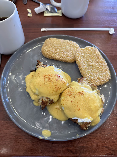 My sister got Crab Cake Benedict and she was far less pleased with her meal. I tried it and the first crab cake was definitely a little fishy tasting however the second one was decent. Both seemed to be undercooked in my opinion. The home fry potatoes were not as good without the onions due to lack of flavor.