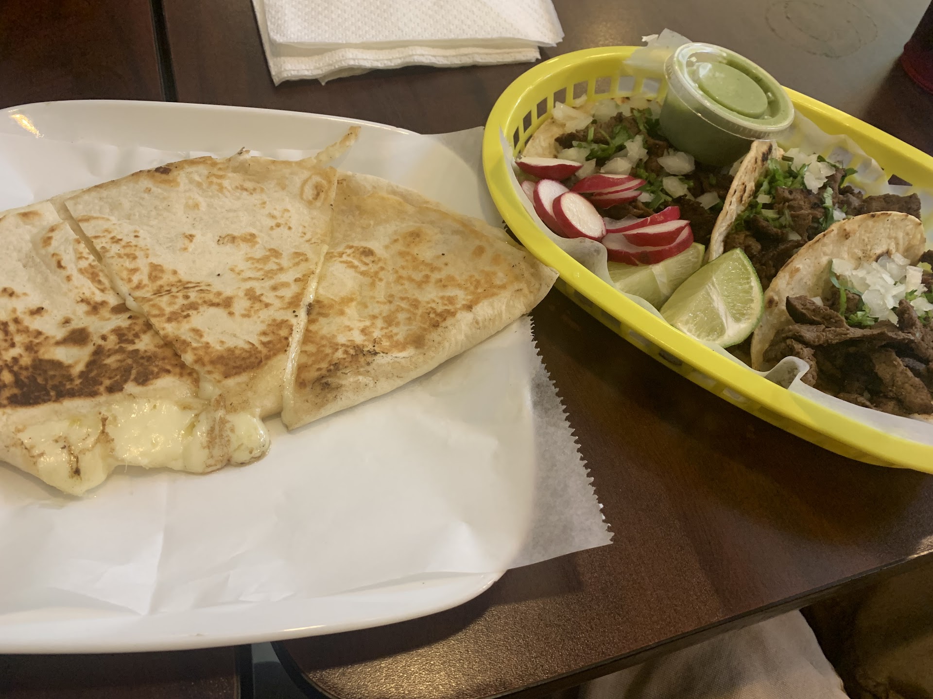 Also, the food just wasn’t very good. The corn tortillas were dry and chewy, the fajitas weren’t very seasoned, and the sides were pretty gross (unmelted cheese on the refried “beans”).