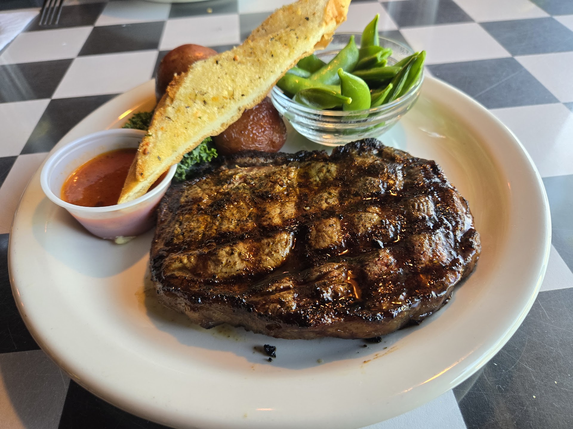 Read moreWe use to go here pretty frequently on our vacations, its been about 2 years since we went back, and I'm not sure if we went at the wrong time its exactly 4:15 when they open. But the seafood sampler tasted like it was boiled with no seasoning, the crab cake contained no crab. Moving forward we ordered the ribeye and the filet mignon. Again, the ribeye char was perfect, even the temp, but I felt like they forgot to season it. It literally tasted like just cooked meat but the fat made it doable. My mother humbly ate her filet, and I noticed her face was trying to hide it, it was the worst. It was cooked medium but the outside was dried out, no seasoning whatsoever, and it looked like the cut was off...it was kinda of stringy when I cut through it. I was a bit upset but we were hungry from traveling all day and had eaten too much for a complaint to be valid. The service was amazing, the manager was awesome. I don't know what happend with the food but definitely a miss. The salads were amazingly fresh. For a $170ish bill we could have gone elsewhere. I don't think we will be going back. It felt odd for the size crowd, and we are very health conscious and do not use a lot of salts or seasonings....and it was still bland at best. (The sad thing is the presentation looks great!)