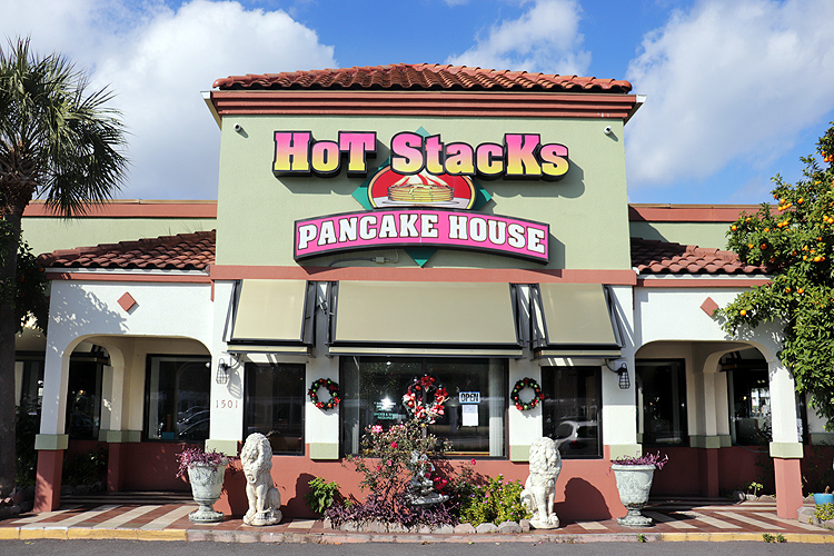 First off, this is the original location (there are a few) We offer gluten free options but we do not offer vegan options while Hot Stacks CAFE does. People rave about our GF options and our servers are very knowledgeable about how all our food is prepared.