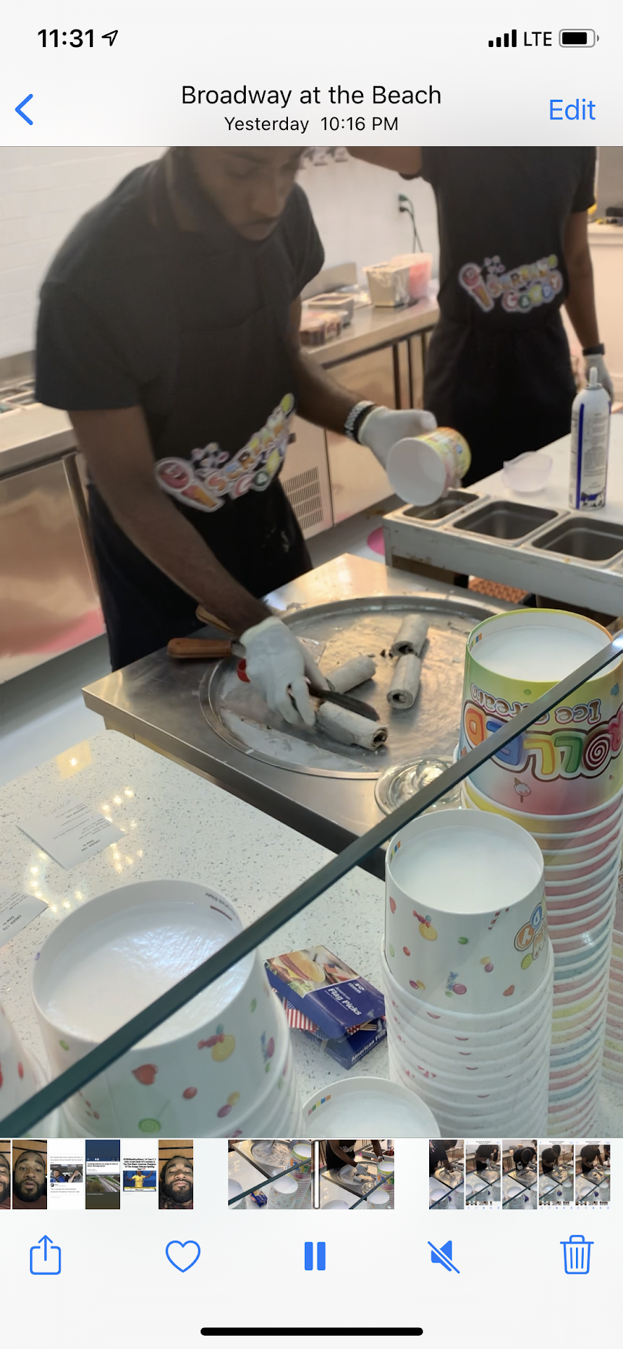 My friend and I ordered Ice scream at this place and had a horrible experience on July 6. I get that it's summer and crazy but there's no excuse. There were more workers than customers around this time. We waited 10 mins to 15 mins which is quite long time for ice cream? Again I understand its a crazy time. However, my order was left on the counter melting becuase they weren't calling out names. I stood there the entire time. I asked if that was my order and no one can tell me. My friend's order never came and was only made when we said something. But my main complaint was one of the male workers was on his phone the entire time he was making someone's order. He would be mixing ice cream, then he would check his phone. One hand on the scoop the other on the phone swiping on social media. This was quite gross and unsanitary considering how much germs are on phones. I asked one of the female coworkers for a manager so I can bring the issue up but she couldnt tell me where the manager was. I then asked her to tell him to stop doing that but she covered for him saying he was texting the manager. He was smiling while swiping which I doubt was to his manager. The counter was also very dirty and no napkins available. There were 7 workers behind the counter and yet the place looked like a mess and orders took forever. The family behind us with little kids was also getting upset at how long their order took. I'm pretty sure it was their order being made by the guy...
