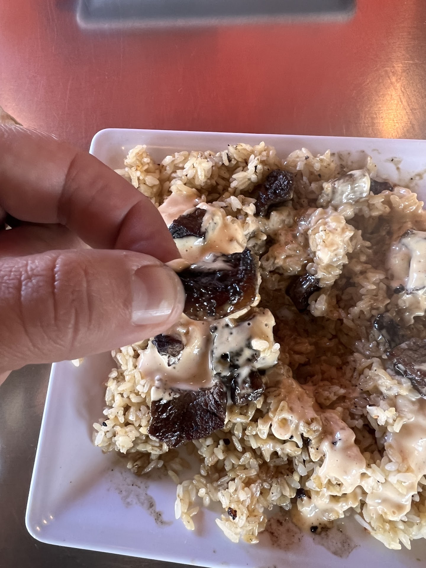The order came out fast which was great, except by the time we drove ALL THE WAY home, got changed and sat down to eat .. it was teriyaki 😤😡.