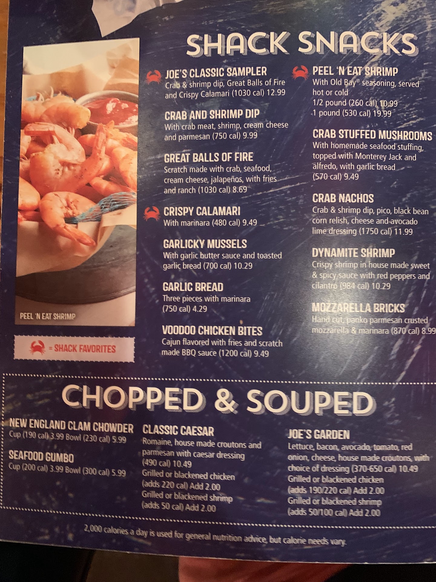 Sad to say that my experience at Joe’s Crab Shack this time around left us feeling extremely disappointed to say the least. We make the trip to Myrtle beach every year for vacation, and plan and budget for our Joe’s Crab Shack dinner (as we understand the market price of seafood changes drastically sometimes.) With the quality Joe’s normally provides, we have no issue paying the prices for the food and experience. However, our most recent visit (being last night) we were left upset and disheartened wondering what had happened to the quality and care at Joe’s.