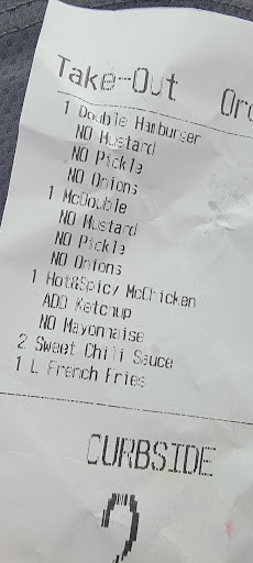 Read moreI have dealt with a lot of bull from this McDonald's. With few cheap options around my job I have frequently visited this McDonald's. Around 15% of the time I have a great experience. I get my food quick and have decent customer service. The best part of this McDonald's is the older white lady with short hair who made me a Macchiato. Now that we are done with the good stuff let's talk about the bad. The other 85% of the time I order her I wait 20-30 minutes to get my food no matter how small or large the order. I have waited nearly an hour for my food on multiple occasions. This alone is unacceptable, but I dealt with it. Their food is also just about what you expect from McDonald's or worse. I have never had an excellent meal from this McDonald's. Today's experience was the last straw for me. I had ordered 3 sandwiches included in the picture and a large fry. The fries I received were about as hard as chips. Absolutely fried to death. I had no time on my lunch break to go back and exchange this and was starving so I ate the 10 or so fries that were edible before putting the rest of the crunchy fries back into the bag. I also received a McChicken instead of a double hamburger. (Not even close). When I got off work I went to get an exchange for these. The manager argued about the missing fries saying that they "were gone" when really a few were missing. The fries that were left in the box were NOT acceptable to be served. If I were in her position I would be nothing but embarrassed and apologetic, but she was nothing but rude and acted as if I was somehow scamming her when they were at fault for serving me inedible food. This restaurant does not deserve to be in service anymore. If you want McDonald's I'd do everything in your power to...