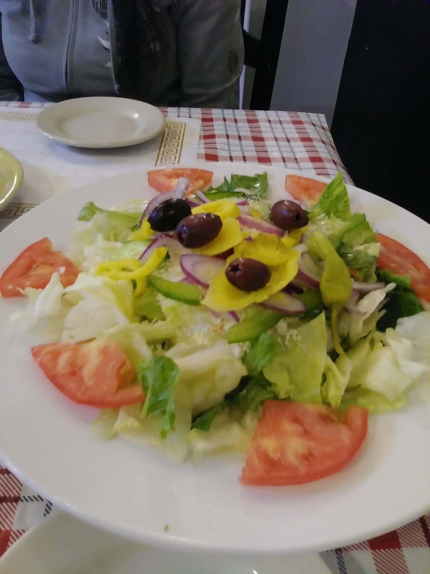 Read moreThis is a nice place with ambience and greek music.We had an extremely shy server who could barely speak and had a spare tire personality. She looked very sad or depressed. We had to hand her our plates when we were finished.The greek salad was lackluster and sparce.Just not enough veggies and the lettuce looked bagged.We were expecting better from previous reviews. The gyro meat was very tasty but the tzatziki sauce was lacking flavor and bland. We had to add a little salad and dressing to the gyro itself to give it a little boost. Although the pita was fresh and tasted maybe homemade, Arby's tzatziki would be better, hate to say but true. There wasn't enough on it .It was served with stale ruffle- like potato chips.We paid 7.00 for four tiny pieces of Spanokopita, which was good but again tzatziki too bland to enjoy dipping in.There is an extensive dessert menu, but we were already a bit disappointed so opted out.I think maybe take a few of those desserts off and focus on the main menu for improvement and maybe teach the server not to be too frightened of the work involved.She stood around alot like a wallflower at a prom.The other server was doing...