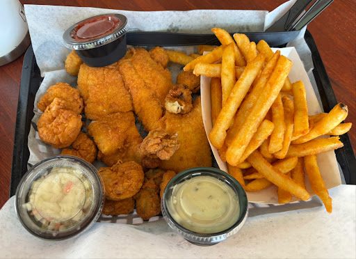 Two of us get here about an hour before the closing time. Our food was good. Fried fish and shrimps were nice and juicy. Fried oysters were not that great but okay. French fries were okay as well. By biggest concern is about the check. It says "18% gratitude" and it already included into the total amount of the check. Please allow me to remind you Merriam-Webster's definition of the word gratitude. It is "a feeling of appreciation or thanks". Gratitude is a voluntery decision of your customers. If it is mandatory and you include it in a check, it actually calls added price. And I can't believe that after you already added 18% to a check, you have nerves to ask for additional tip on the final check. Really?! Only one reason I didn't cross over 18% on my check is because I feel very bad for Alayna, our server. She had to run food alone, pick up dirty dishes, and wipe off tables. And the lady manager who came to our table to ask about our food was barely able to speak and hold herself straight because of the alcohol intoxication. How can you possibly run this business in that kind of condition? No wonder why there are so many resent negative reviews about this place. If you don't respect your customers, we will find another place to go. Luckily for us, there are plenty other...