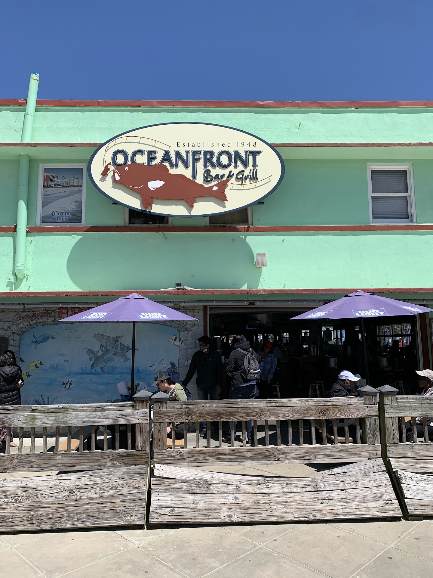Read moreThis bar & grill is in a great location on the boardwalk! Plenty of seating inside & out. The food is well priced. They definitely take pride in preparing their food. Everything tastes as it should.. you dont get fries that taste like fish. They definitely change their oil as it all tasted very fresh and as it should. I absolutely recommend the Shrimp basket! They are at least the size of a half dollar and plump! The breading is fabulous and the fries that come with it are great! It is the best fried shrimp I have ever had!! My husband loves the Bang Bang Shrimp.. it has a slightly, spicy Asian sauce on it with scallions and it was delicious as well!! You get a good amount for your money. We also had the Shrimp & Crab dip- excellent as well! For 2 beers, the crab dip, our 2 meals and a soda we spent about $50.00. We went back for lunch and had 2 sodas and the 2 shrimp meals and spent $30.00. As it is on the corner there is a great breeze because it is open on two sides. I would recommend a sweater as it does get chilly. The waitress we had was great and we were served very quickly. I will DEFINITELY be back everytime I am in Myrtle Beach.. I recommend you try the Ocean Front Bar & Grill for yourself!! Just be careful & dont step on Pete the local pigeon.. he can't fly so he...