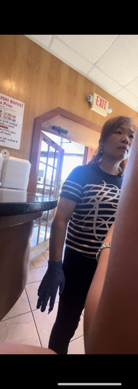 Also I think you should set up caution signs on the raw hibachi bar because I saw a lady eating raw food off her plate while walking around in the buffet while still putting food on her plate. You can check the cameras. I was there earlier today April 13...