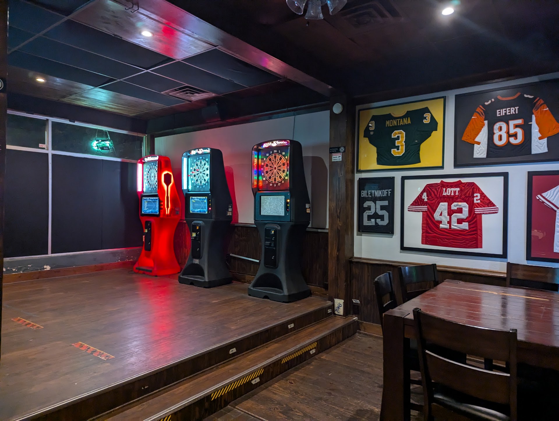 Wonderful local watering hole. Loved the step up to a sunken bar with the rolling chairs. Makes it fun to socialize. The bar itself is huge and great for groups. Has an area for darts and an adorable patio out back. Cold draft beer on tap, decent selection of local drafts and some classic domestics. They also have wine and a good liquor selection for shots and simple cocktails. We didn't hit the food but there were rotating specials and when food came out for others it looked delicious. We visited multiple times during our week-long stay in Myrtle. The whole vibe was just chill and fun with sports always on. We found it to be welcoming from the staff and the other patrons. This might be our regular bar if we were...