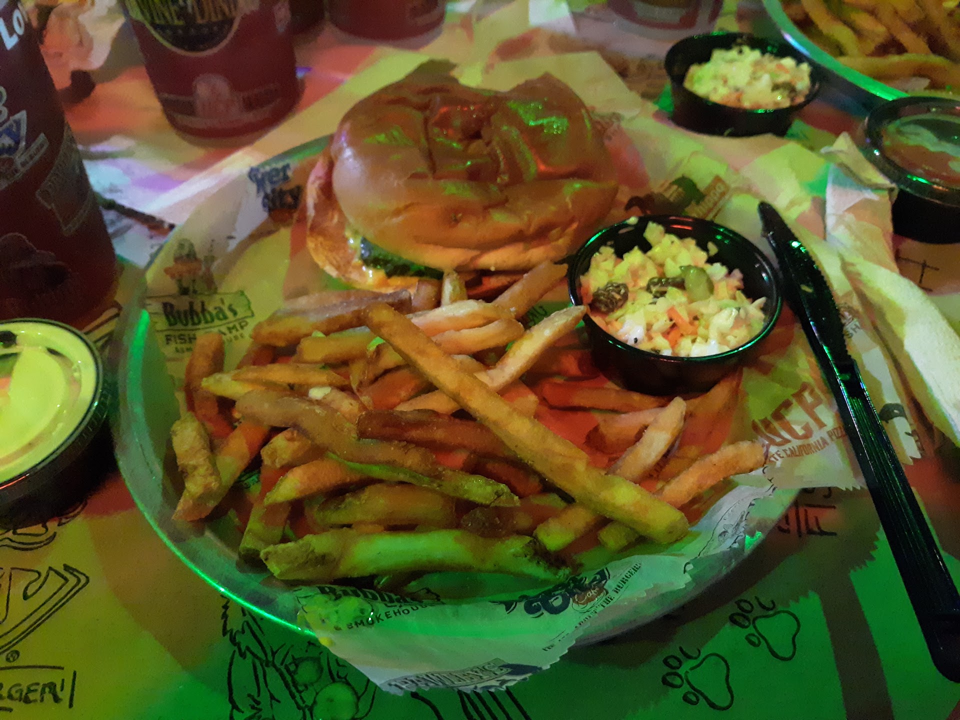 Read moreThis place used to be the main place for great hamburgers on the beach. They still allow you to write on the walls with sharpies . That is a nice feature of this establishment . For people vacationing here this place has a awesome location right along Ocean Boulevard. The management here seems like customers are the enemy when they are so busy. They get right hateful for no reason because they are so busy. The food quality just doesn't seem as good as it used to be. Just not as fresh tasting and not piping hot like it used to be. The burgers are still pretty decent size but the service seems like they have to instead of a want to out of the people running this place. Nobody likes to go to a place where they feel like they're doing you a favor. My wife had to help them at the bar make new plates for the hamburgers. They did not even offer Us free dessert or any kind of discount for helping them with their dishes. Everybody was not ready for the crowd. They ran out of tea they ran out of dishes. The food was not coming out of the kitchen that fast. And what's so funny is they already had a lot of the hamburgers cooked. Which I think is a No-No in a fresh hamburger place. I still say you're better off driving down the road a little bit and going to Logan's Steakhouse. They stay open late you don't have to wash or help them with the dishes. And you still get a good military discount or a local discount. And the hamburgers have much better meat quality. And the big Key to Logan's is they are charcoal grilled. A much better Beach hamburger....