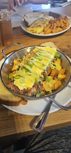 I liked my classic eggs Benedict and the crap cake app my mom ordered a corn beef hash skillet it looked like an omelette she was hungry and only took 1 bite and the waitress never came back till the end as I mentioned so my mom didnāt get to eat after all that cause she didnāt like it , so strong potential to be amazing but they need to be friendlier and work as a team all the servers had their heads down wouldnāt look up so u couldnāt ask them for anything and they would go to there 1-3 tables and go stand back near the bar and play on their phones. Therefore with proper management and a friendly atmosphere they could sour ! But for now good luck if youāre hungry ⦠It was just weird but when I asked the server for fried green tomatoes which is on their menu itās not an all but itās a side on one of their dishes she kept trying to tell me ok great so u want two red tomatoe slices and I kept saying no see just whatās on the menu it says friend green tomatoes she says back no we donāt have those itās sliced red ones I asked then why is it printed on the menu she replied with a shrug like I DONT KNOW ? So I said ok Iām just trying to order this meal and it says it comes with fried green tomatoes so if you all are out please just let me know again she stands there like DUH what so I said please go ask the chief if he can prepare this entree the way itās offered on the menu or did the menu change or is he out cause if so Iāll just order something different she walks away and comes back within 10 seconds I can see her she didnāt ask anyone anything she just walked towards the bar and back and tells me again no itās red sliced regular tomatoes so I give up and thatās why I just had classic eggs Benedict our waitress couldnāt comprehend a...
