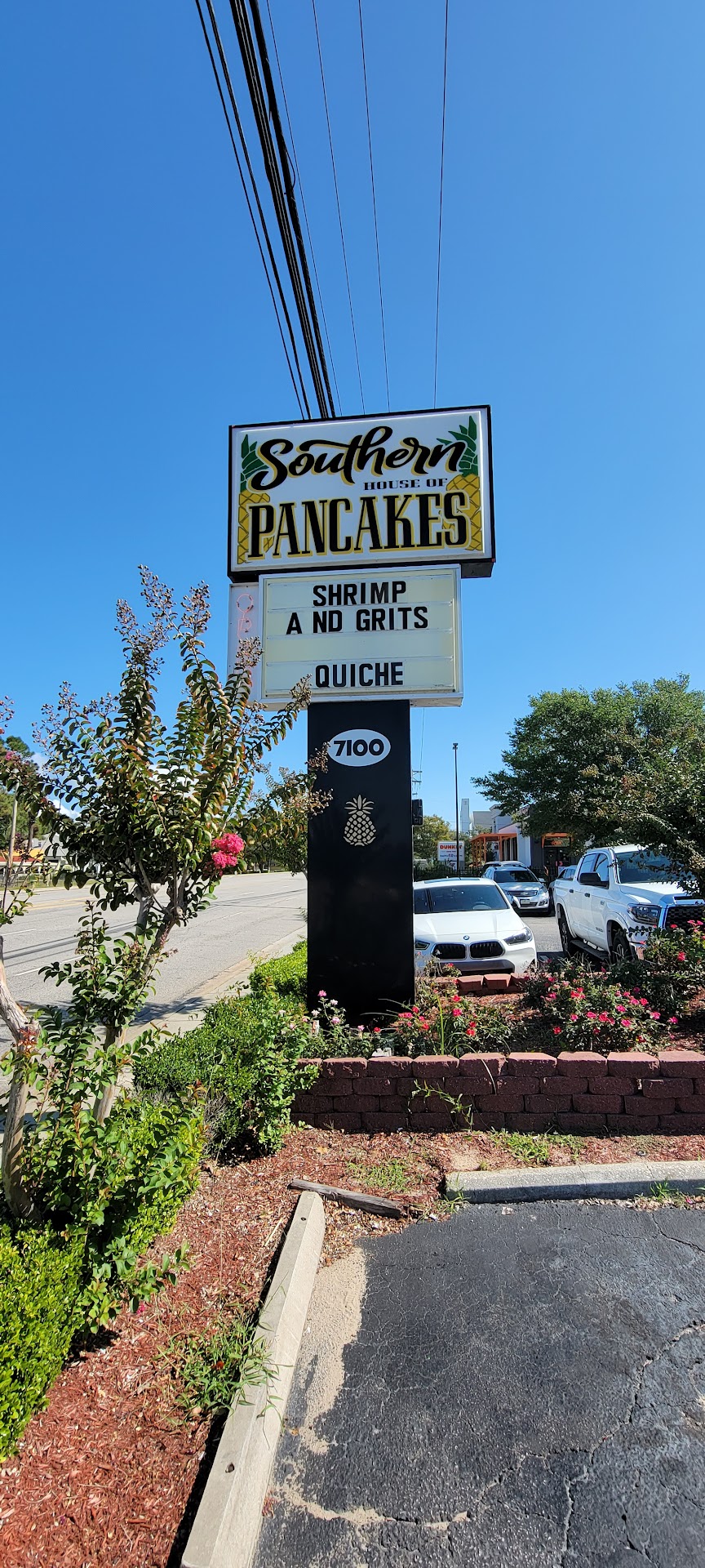 Ā Ā Ā Read more7/20/24 I found this place just googling pancake places near me. When we went in we were told there was a 10 minute wait which isn't bad at all. We were seated within 5 minutes and the place was packed. Working retail we expected to have a substantial wait for our food based on the amount of people inside. The waitress was at our table in a few minutes and had our drinks to us very quickly. We ordered Gimme Some Sugar and the vodka with cranberry juice. She took our order which consisted of blueberry pancakes and sausage for me and an omelet with pancakes and grits for my husband. Our food arrived within 10 minutes and it was fresh and hot. The portions are a good size and the food was excellent. Neither one of us could finish. The service is comparable to chick filet. It was fascinating to see everyone work together. Our waitress was attentive and despite all the tables being full she made time to chat with us every time she came over. We ended up spending $80. That included our food, specialty drinks which were about $10 each and a t-shirt. We also left a generous tip to our waitress. She was amazing. 10 out of 10 would recommend. Honestly, I would've given atmosphere a 4.5 stars because it was loud but not loud enough that we had to raise our voices to much to hear each other. I left it at 5 because the place is small. We'd still go back. This is now one of our...