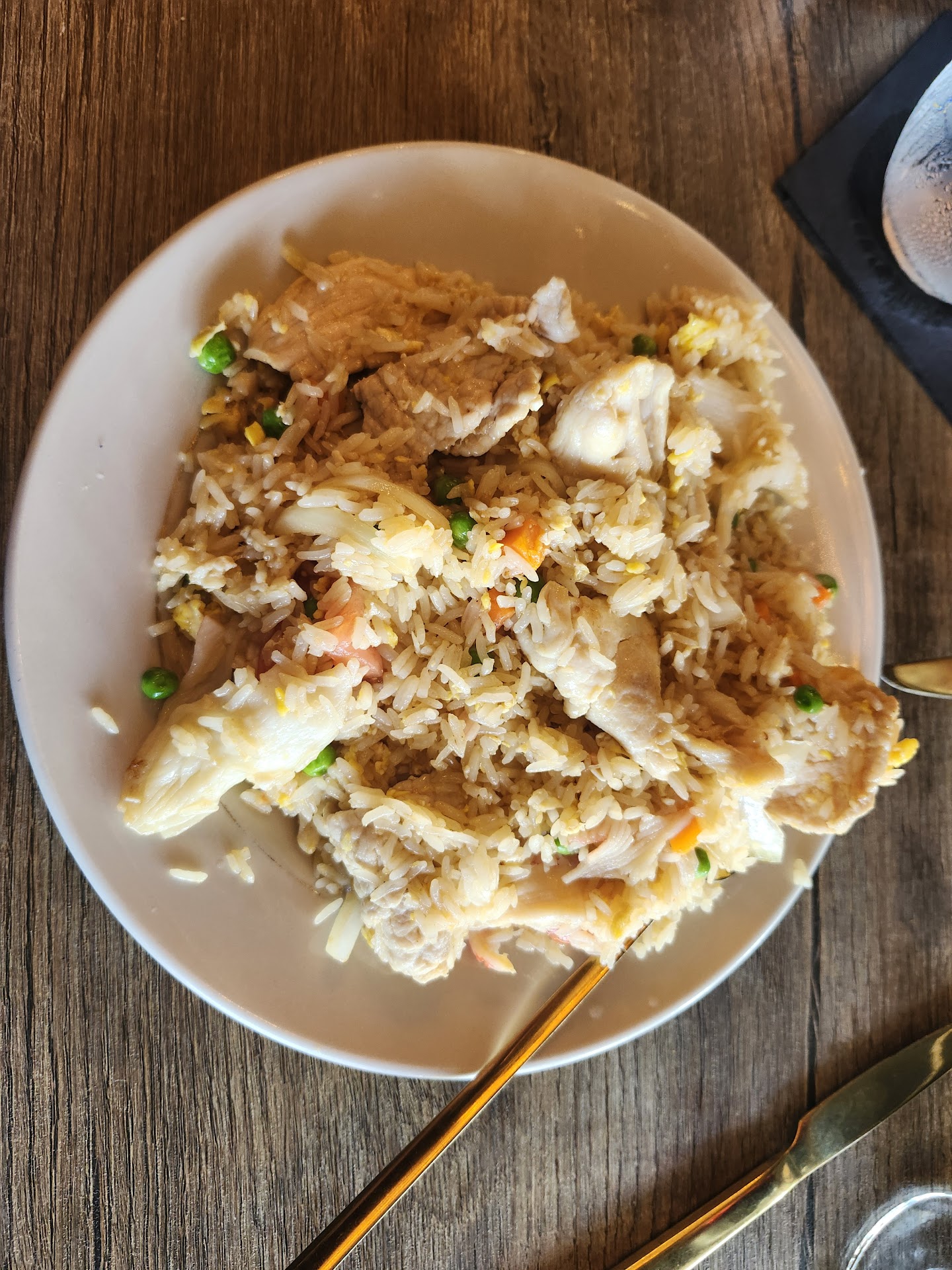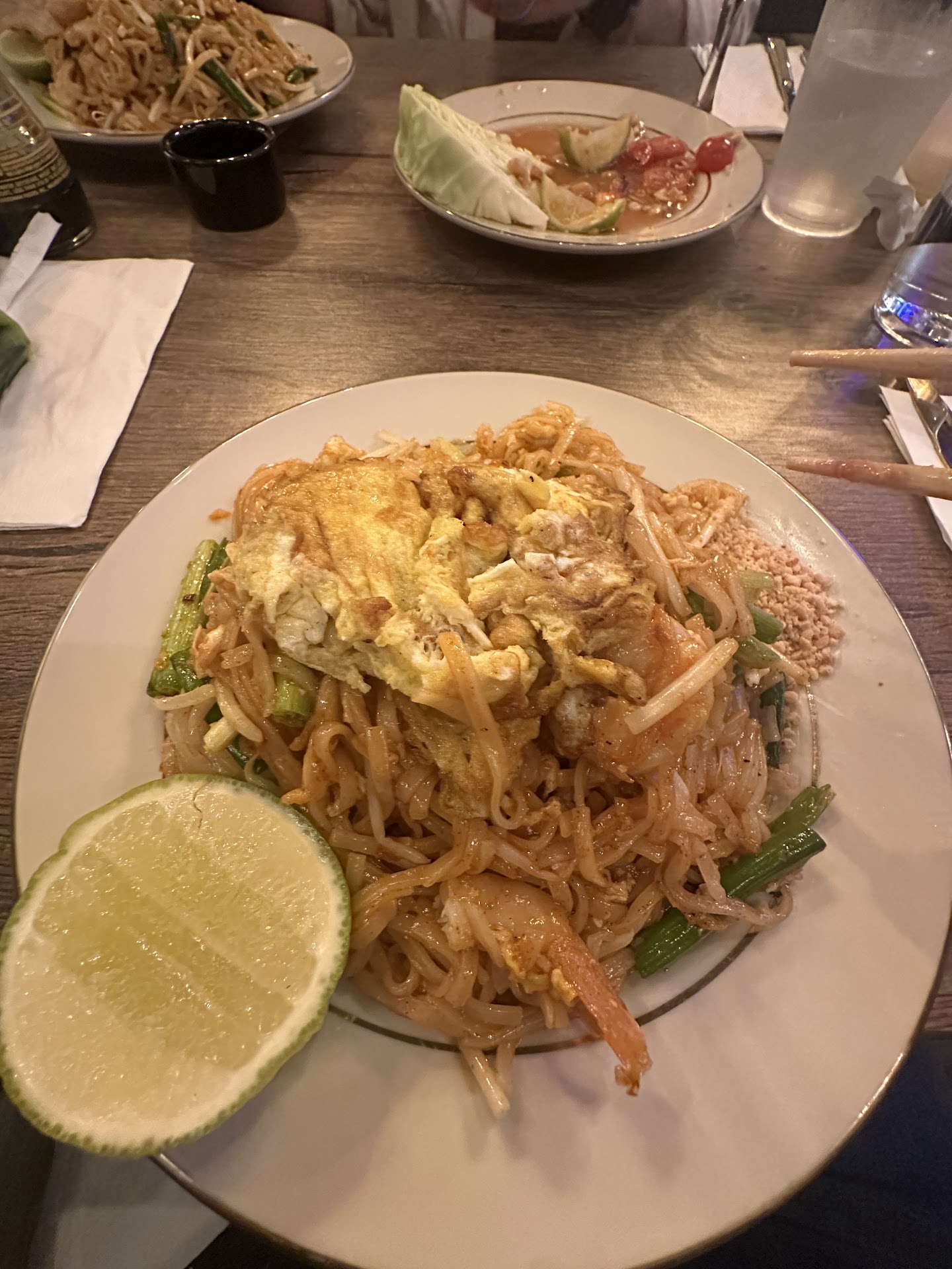 This was my second time dining at Thai bistro. The first time was the first week they likened, and the food has improved. The Thai food here is reminiscent of my travel to Thailand in 2019. Tom Kha Gai soup and pad Thai(shrimp pad training photo with an extra egg on top) bursting with flavor. Get the medium spice. It is not raw heat but an abundance of flavored heat. Another thing that changed since opening is they took the dark tint off the front windows. A welcome move, as when you drive by it, it does not seem centered in a small(ish) city, but a restaurant in the best districts of a larger city. Chandeliers hang, faux brick walls, and ambient lighting create a mood of modernism with class. If the more traditional Thai staff is on hand, ask for a Thai tea. Normally a cup full of sugar, when prepared in this way, it is a well balanced creamy treat of a drink that you will most likely drink way too quickly.
