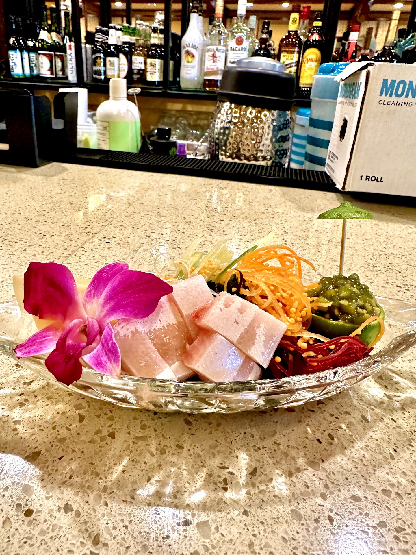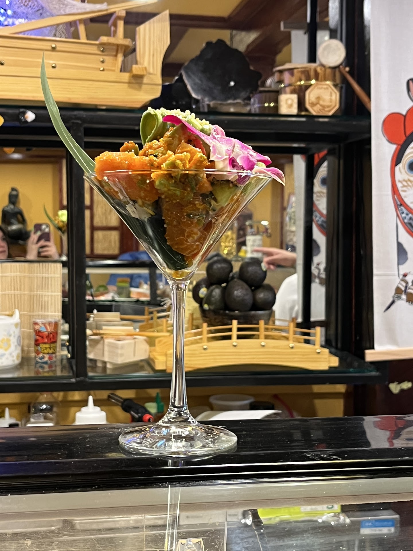 Upon arrival I was greeted by the ADORABLE Fern, who told us we can sit at the sushi bar, and I am GLAD we did. The minute we walked over, the sushi chef greeted us with a smile and charm that had us laughing- and that laughter lasted until the end of our meal. He had us try his rice that he specifically uses for sushi. It was different! Yet soooo good! Perfect sticky texture. Then I mentioned I wasn’t a fan of yellow tail and he had me try his knowing I would change my mind and boy did I! None of his fish was overly “fishy”- if you catch my drift. We had the sushi martini, my husband had pad Thai and I had yellow curry. My husband also had nigiri and ate both pieces which made me sad so our chef made me a baby one to make up for it haha. We also had sake with our meal which he recommended and it was delicious!