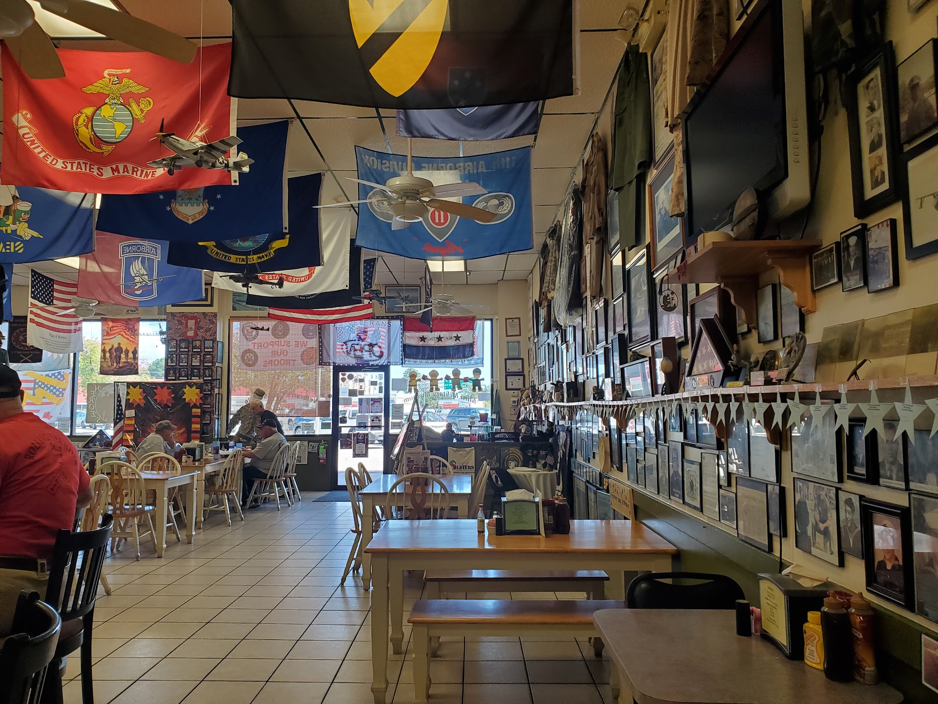Read moreWe saw this on Fox and Friends a few months ago and while at our place in Myrtle Beach stopped in. The second my husband, who served in Germany and the USAF in the early 60's, said it took his breath away. From WWII to the current who are serving memorabilia lined the walls. In all Bill's years he rarely talks about his service but you could see in his eyes and silent walking around the displays that he was going back in time. First, of you are a veteran or even not please stop by this location and enjoy a simple meal. I enjoyed the Hot Dog and cucumber salad 5 ⭐. Bill had the breakfast special Sunny Side, Link Sausage and two pancakes...he enjoyed so 5 ⭐. Selection while not large is great for any breakfast or lunch. Parking is plenty full as it is located in a strip mall just off 707. Julie, who runs the place, filled us in with all the great work that they do with veterans. Regretfully our government seems to be more interested in illegals as opposed to veterans as much of what this little group is doing is through local donations of products and labor. Hours are getting settled as the location is new so suggest you check. All we can say is we will be steady customers every time we are in Myrtle Beach and hope you also...