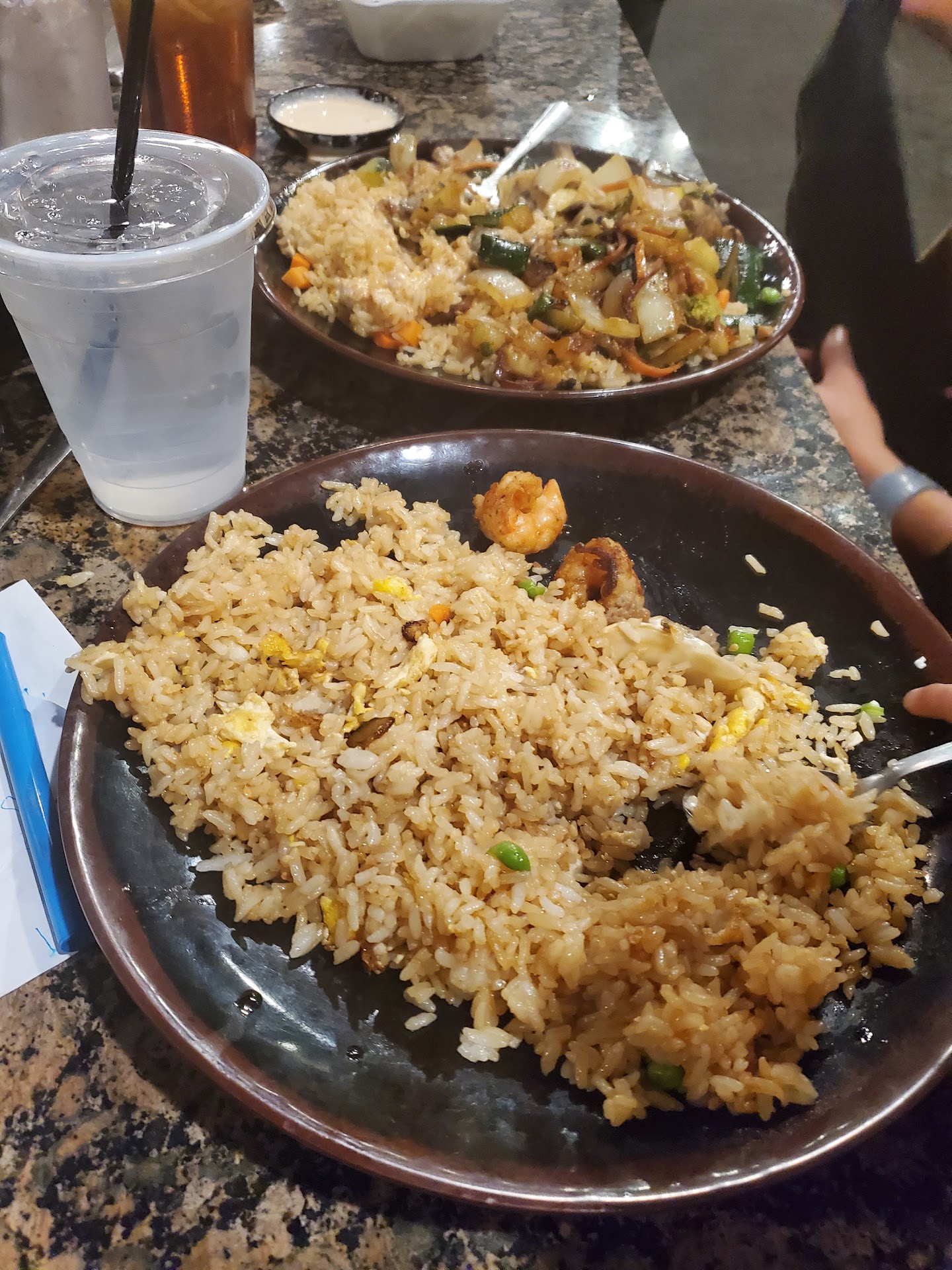 So how in the world did we end up at a Japanese steakhouse?? The ambiance caught all of their eye, and I got a phone call. Yes, I had a phone call because Daddy was hangry and went to find a seat before I started chewing my fingers!