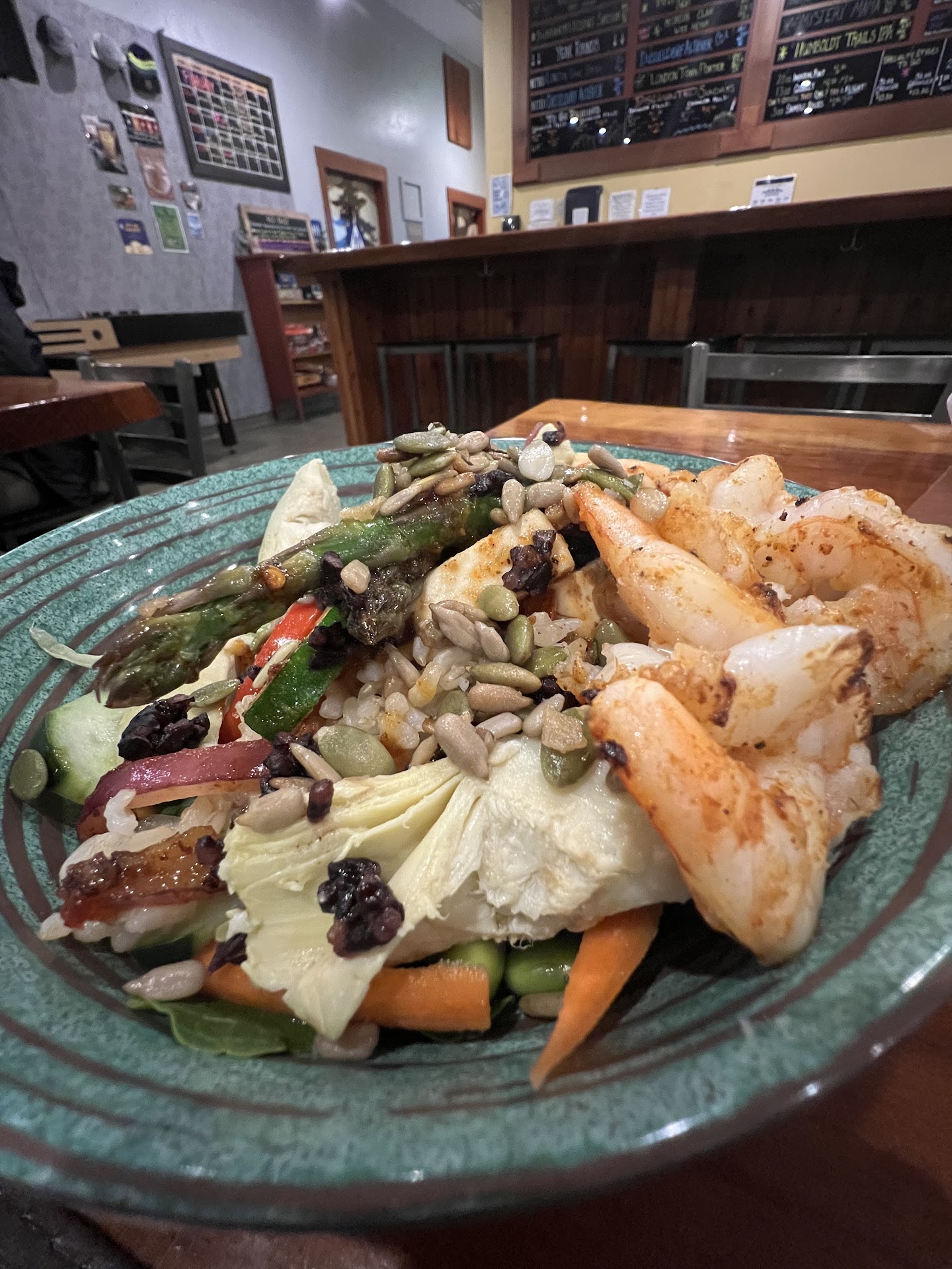 Curtain Cookin' Nook knows how to cook one of the best burgers in the area, with quality ingredients. Wagyu beef. Locally sourced greens. If I need something on the healthier side because I've doubled down on some of the breweries' delicious libations (or started with totchos, give me all of those!!), Hum Yum bowl (I like to add shrimp), which has a fantastic vinaigrette.