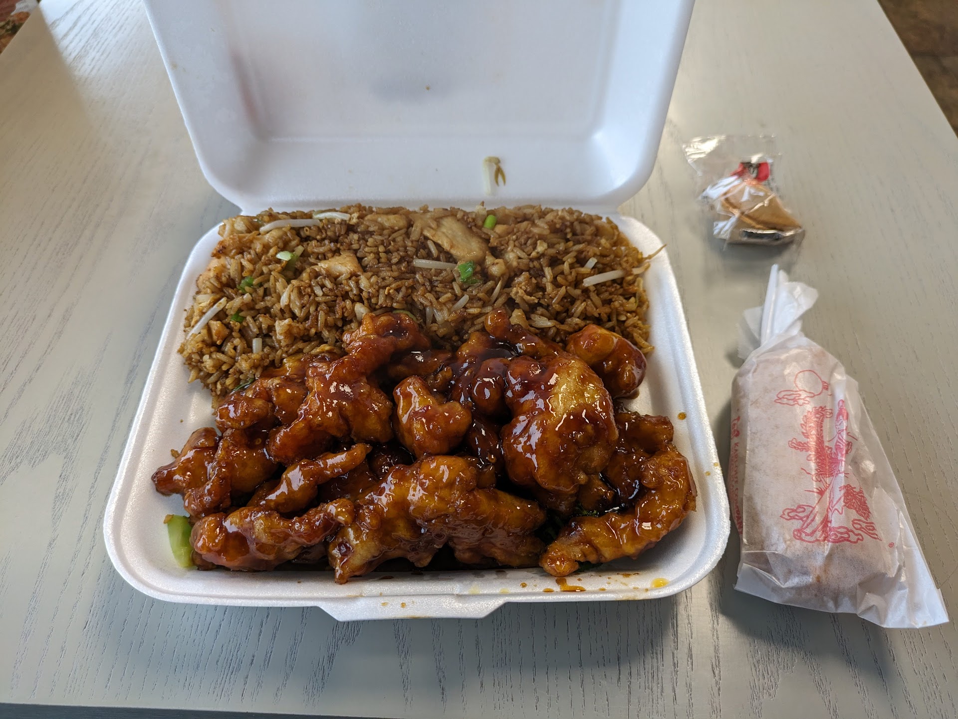 I ordered a Mongolian Beef, Orange Chicken and BBQ Pork Lo Mein. The only thing the Orange Chicken had going for it was the the color; the texture was that of something that came out of a freezer and into a microwave. It tasted like they forgot to add any sort of seasoning or spices and it smelled like rancid deep fryer oil.