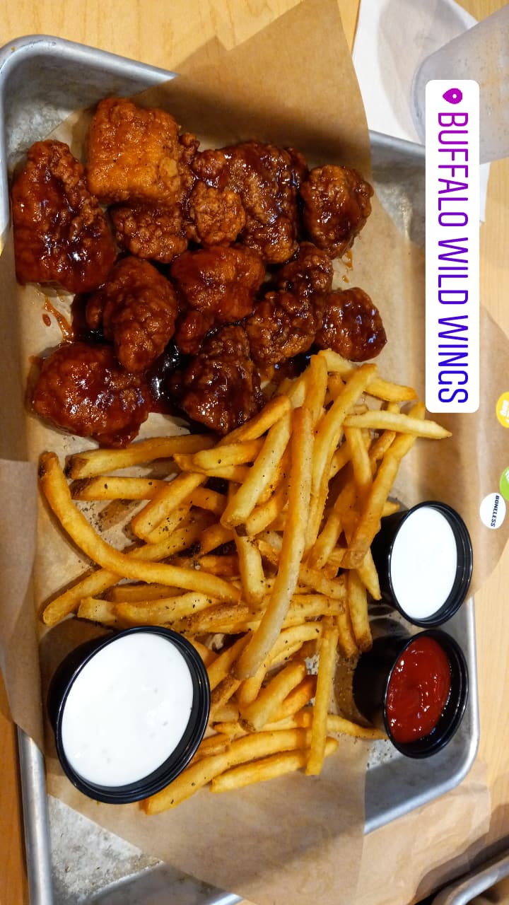 Read moreIt's Buffalo Wild Wings. The name says it all. Things will get wild, and you will get wings. Mostly, I get their tenders or their boneless wings because I'm lazy and don't feel like eating around bones. I love their Salt & Vinegar fry seasoning because I grew up with it. I usually get the pretzels because, damn, those things are delicious. It comes with beer cheese and a honey mustard sauce that drives it home. I wish they would serve even numbers of the pretzels because I often have to fight my best friend or my wife for the last one. It isn't much of a fight; I'm a big guy. I love the new Mountain Dew Legend. Blackberry and citrus is a vibe I can get used to. One thing to note, when you go at lunchtime, and say you want a Mountain Dew Legend, make sure you explain it is the soda you want and not the Long Island Ice Tea version. I made that mistake once. The tables are always clean and the staff are super friendly. Make sure you sign up for those BWW points because you can get meals or apps for free. I say free, but you've already paid for them in other trips, if you really want to be nitpicky.