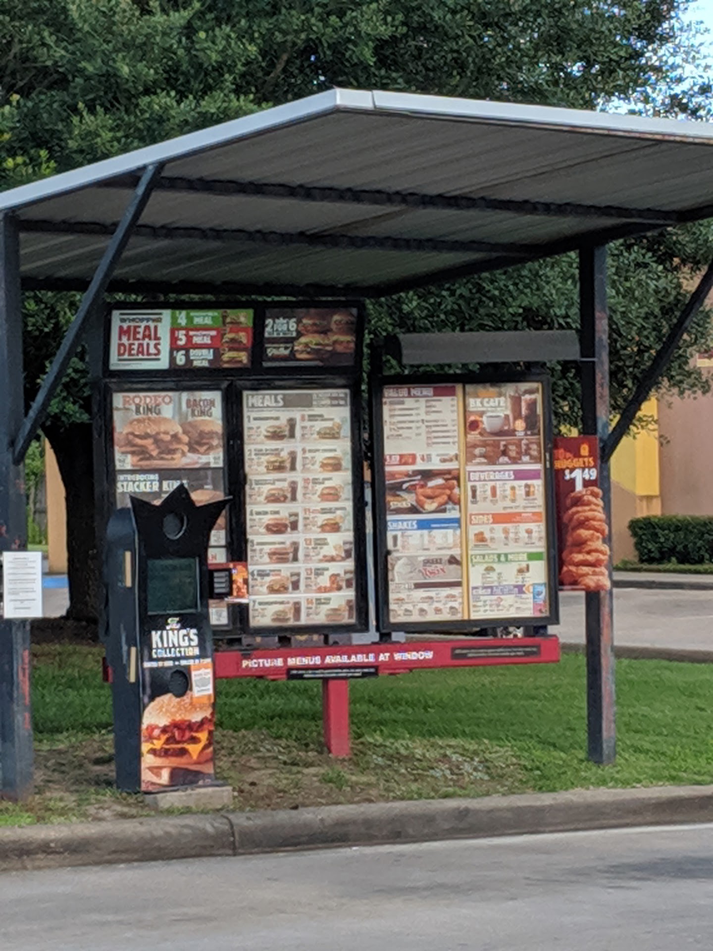 ย ย ย Read moreIf your on HWY 59 coming into Lufkin just before the Whitehouse overpass you can easily see this Burger King. I like going through their drive thru because they are quick, never have long line so there's no wait and there's easy access. I typically like Burger King but this visit was not a good experience. If you order in the evenings be sure to double check your order while your there as there's nothing more irritating than getting home and missing an item. In my situation I couldn't tell there was a problem until I got home with the order. I ordered the chicken sandwich (one of my favs)..... it was on plain bread no sauce just a dried up chicken patty and a small piece of wilted lettuce that looked it had set out all day. I wasn't happy to say the least!! I fed it to the trash and had a frozen dinner. I have gone back and the meal was...
