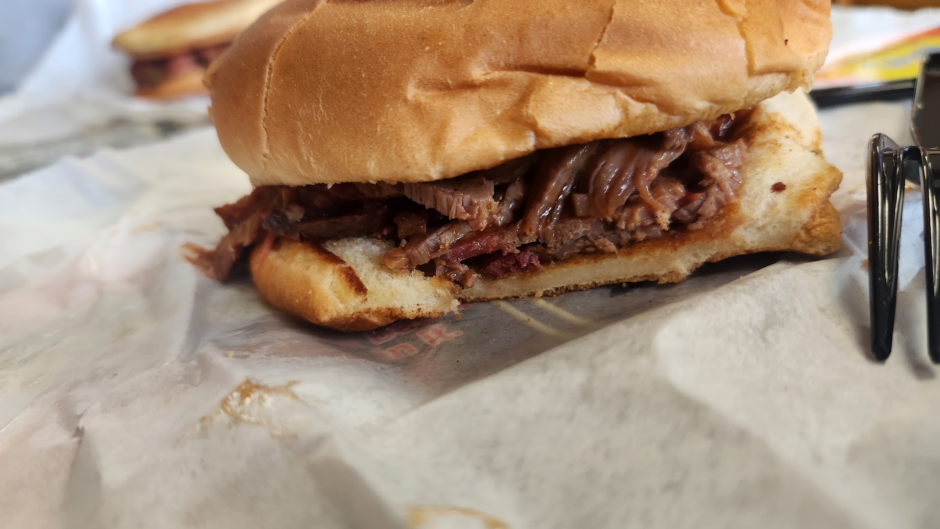 Read moreWe came in as we were passing through. I was referred by a friend. At first glance everything is great. Cute old school bbq atmosphere. Great staff. Fast service. It all fell apart when the husband realized this establishment did not have ribs, which was what he wanted. From there he ordered a two meat plate with sausage and brisket with baked beans and potato salad. I ordered a chopped brisket sandwich, a bag of Lay’s potato chips, & a fountain drink. I could tell by the looks of his sausage we were not in the heart of German and Czech BBQ country we are used to. It appeared to be more like Eckerich sausage than anything we typically eat from our local BBQ restaurants back home. The brisket had evidently either never been in a smoker at all because there was zero smoke ring or smoke flavor, or it was overcooked and loaded with sauce to smother the flavor all together. It was a bland sauced mush. My brisket sandwich was not great at all. It’s the first time in my lifetime that I have ever had to force myself to finish my food. That is saying a lot. It was so finely chopped it was more like baby food.