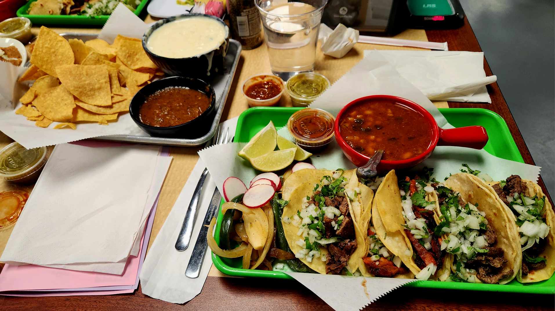 Todo salió BIEN DELICIOSO! El precio es barato comparando con otros lugares que venden comida "mexicana" pero esos sitios ni son auténtico! Mantienen las mesas limpias y cuando comimos adentro ayer, nos trajeron la comida a la mesa. (No se si era porque no estaba tan ocupados.)