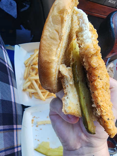 I wanted to love it. But I'm just not impressed at all. When it 1st opened the line was backed up to the highway. I had to wait until all that stopped before I could finally try the food here. Because the one time I did get in line, I waited 45 minutes before I finally pulled out of the line and went somewhere else. As for the food, the chicken sandwich certainly isn't chick-fil-a, I can promise you that. It's a very thin slice of chicken on very basic bread. Speaking of thin, that's also what the fries are. They're tiny actually. Tiny thin midget size French fries. And the sauce for the fries includes HIGH FRUCTOSE CORN SYRUP- plus a bazillion other toxins & chemicals- thanks, that's just what my kids need rolling my eyes When the worker asked me what drinks I wanted, I looked over the whole entire menu & there was NO drinks listed. So he said they have Pepsi, Dr. Pepper, & 1 other soda. I said "That's it?!?! Only 3 sodas??? So you have kids meals, but no kid drinks. Oh ok." He then tells me they also have Pink Lemonade. I said, ok give me that. After the 1st sip, I knew it was ONLY Lemonade- not PINK Lemonade. Thanks for letting me pay for something I didn't order. I just can't bring myself to eat here again. People are only eating here because it's somewhere different- not because the food is amazing (because it's not) And we're all right here in Nac-a-nowhere where the options are extremely limited. The food is very basic. Very ordinary. Plain jane. Nothing spectacular. It's just...
