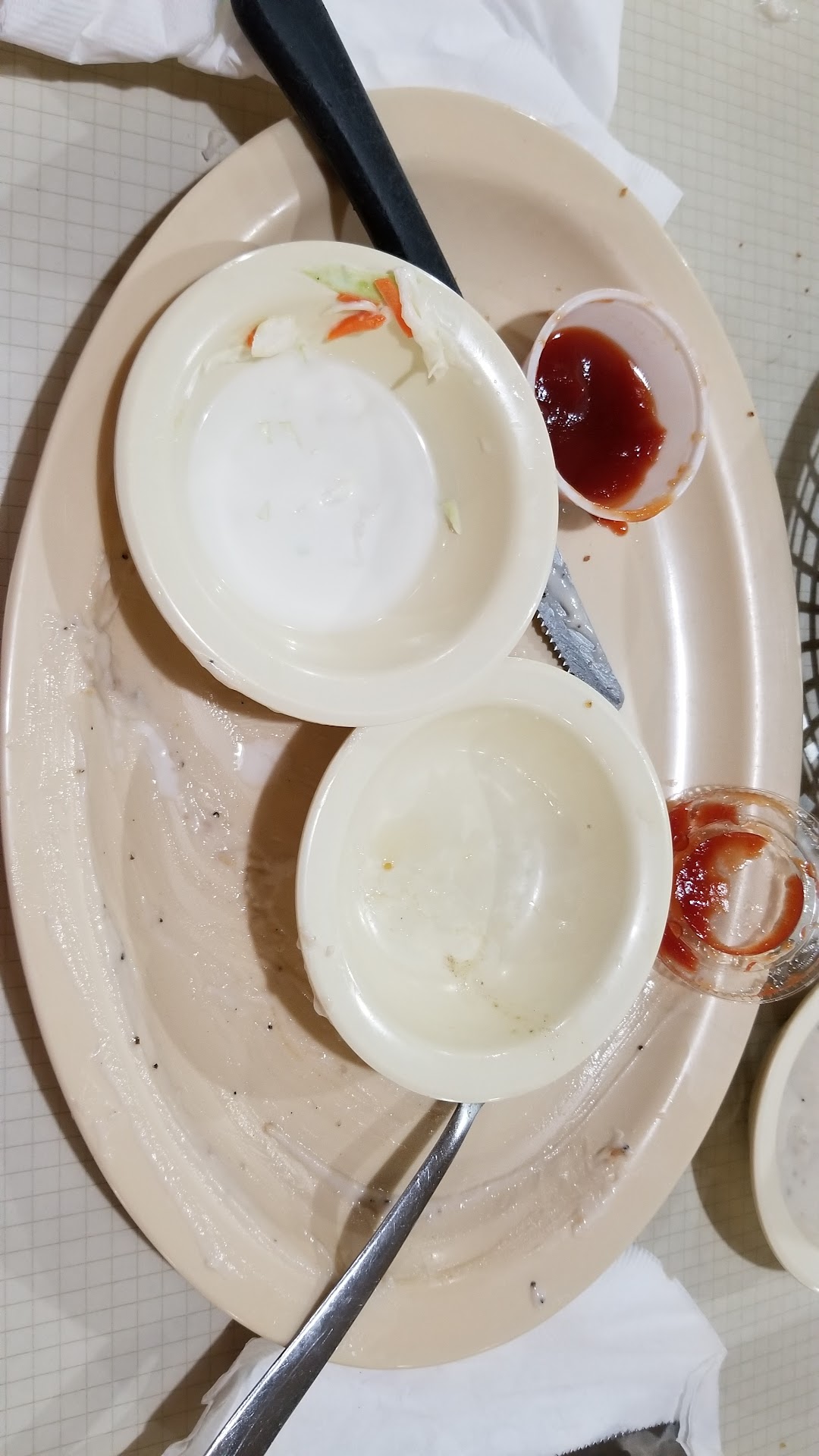 Read moreFirst time coming in yesterday and also last. I order the fish dinner, mashed potatoes, and pink lady. Fish was bland with no seasoning, mashed potatoes tasted like old baked potatoes that had been half smashed and also had no flavor the pink lady fruit salad was weird it definitely was not fresh as the pineapples were brown and the pecans were soggy and the hush puppies were raw. The best thing about my meal was the tartar sauce. There was also drama between the kitchen and wait staff. They were not busy but our waitress forgot everything we asked her. I had to ask for a to go box twice she then took it to the wrong table we asked for teas to go we never even got those. My husband ordered a waffle with his food which they forgot then said it was just back there cooking the cook then tells the waitress he could have the one that she tore to pieces or she could cook him another one. The waitress then comes to our table and tells my husband he may or may not get his waffle and we will see. A man at the table beside us asked for a coffee refill a few times she never came back and was just all over the place doing nothing. Then she walks over and asks if he wanted more coffee to which he replied yes if you're actually going to bring it this time. 10/10 do not recommend bland food nasty food, inattentive wait staff, and the drama between kitchen and wait staff was...