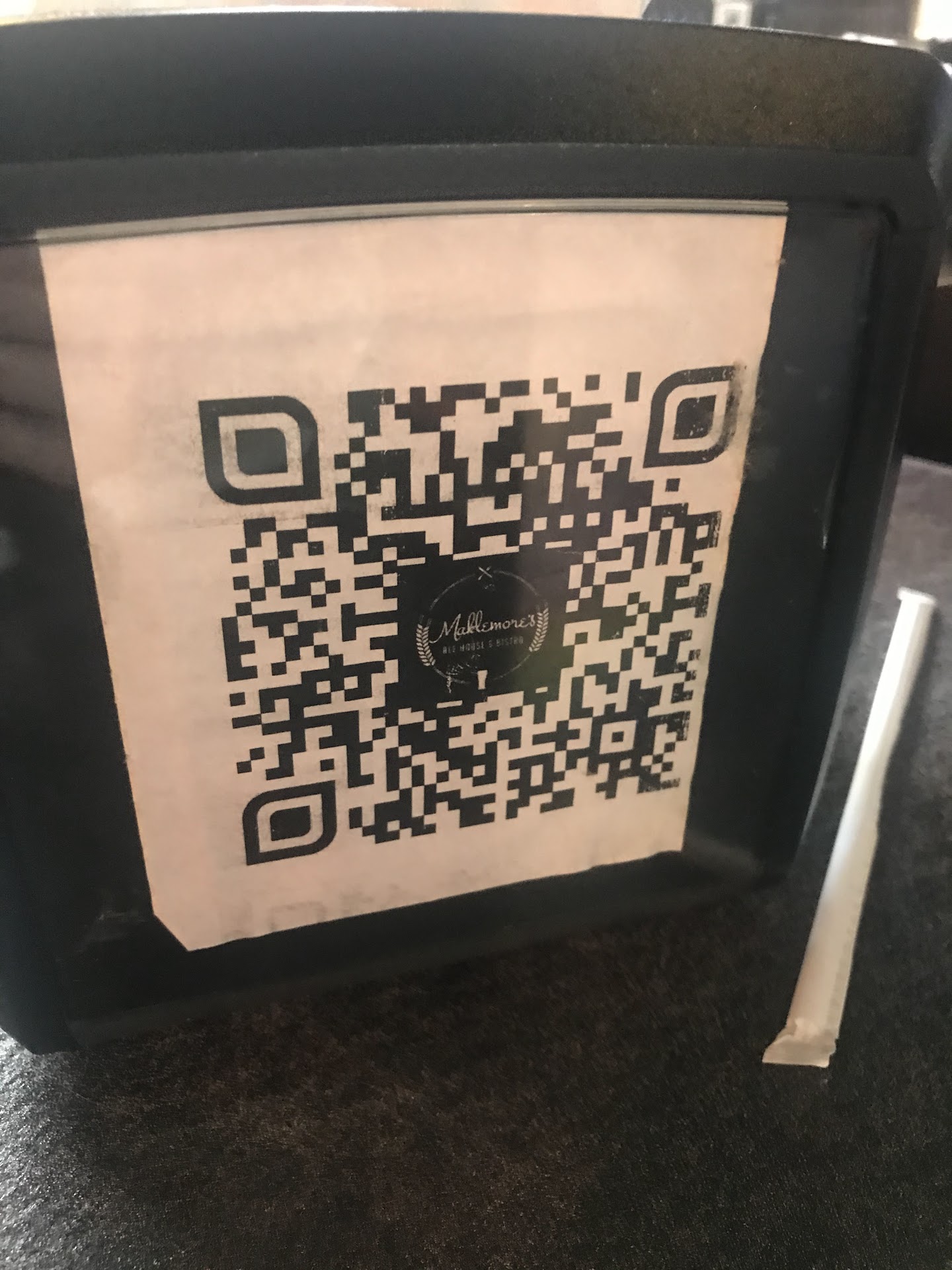 There is a paper menu but you can use your phone to pull up the menu yourself by pointing your camera at the Barcode on the napkin holder. See picture.