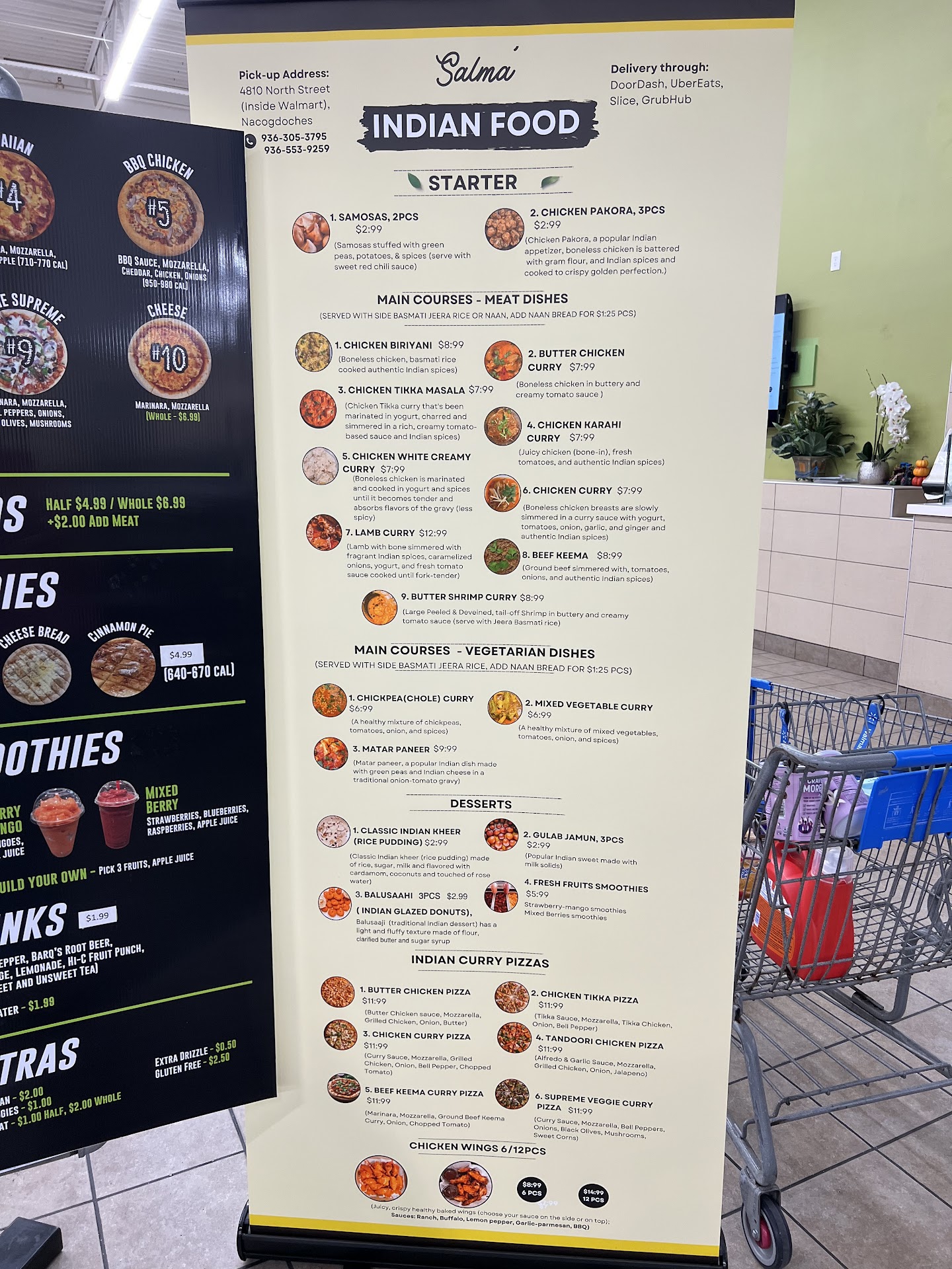 Read moreThis place was such a delight to discover! I go to this Walmart every week but was just oblivious to this gem the whole time. I finally took notice and had the spinach paneer (SOOOOO GOOD!) and some Chicken Curry. The naan is out of this world delicious and so fresh. I’ve stopped to grab some to eat with our homemade dinner because my kids love it so much.