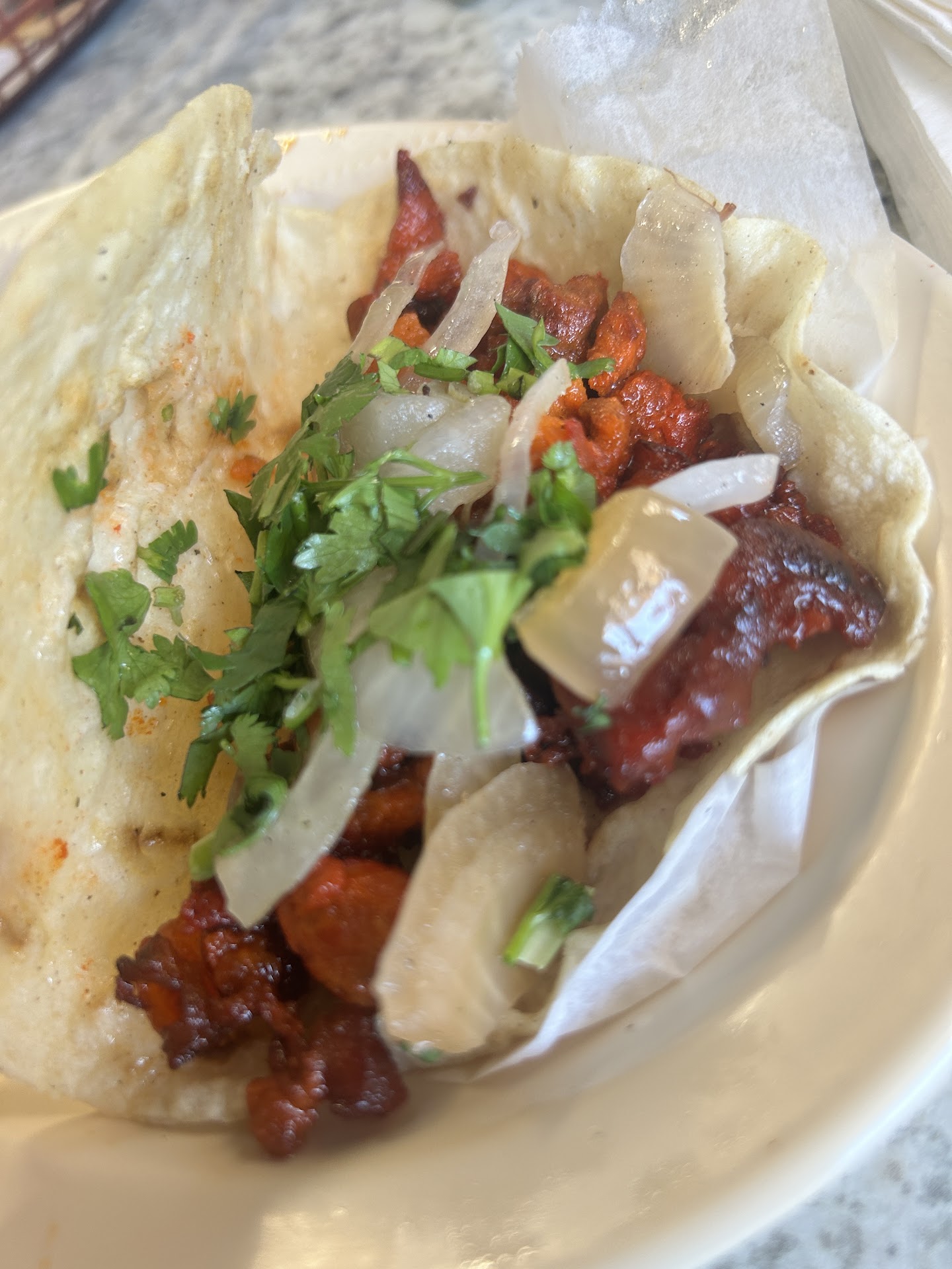 Read moreBest Al Pastor in town for sure. I've eaten way more Al Pastor tacos in my life than the average human being...I assure you that these are the best Taco Al Pastor (con maíz, cilantro, y cebolla) for the price ($3.25 for 2), size (big handmade corn tortillas the size of most flour tortillas), stuffed with big juicy chunks of that iconic, neon red, smokey chile marinade. I can't say for certain because I didn't take a peek in the kitchen, but if I had to guess (judging by the texture & flavor of the pork) they cook there's on a trompo. There's nothing worse than a taco stand claiming to specialize in Al Pastor tacos, but don't cook the pork on a trompo. The marinade is the first major component to good Al Pastor, the second is that it's slow spit roasted shawerma style to maintain texture and promote even maillarde reaction, the 3rd (in my opinion) is the tortilla. This place had all 3. Or...