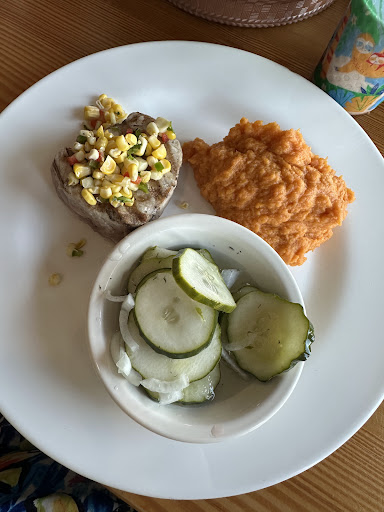 My husband managed to stomach some bites of his food, and my toddler ravenously ate their fries; I didn’t eat anything. As soon as we got back to our hotel 30 minutes away, my perfectly healthy husband and son had explosive diarrhea. I have IBS and felt perfectly fine, so I guess you can decide for yourself what variables contributed to that.