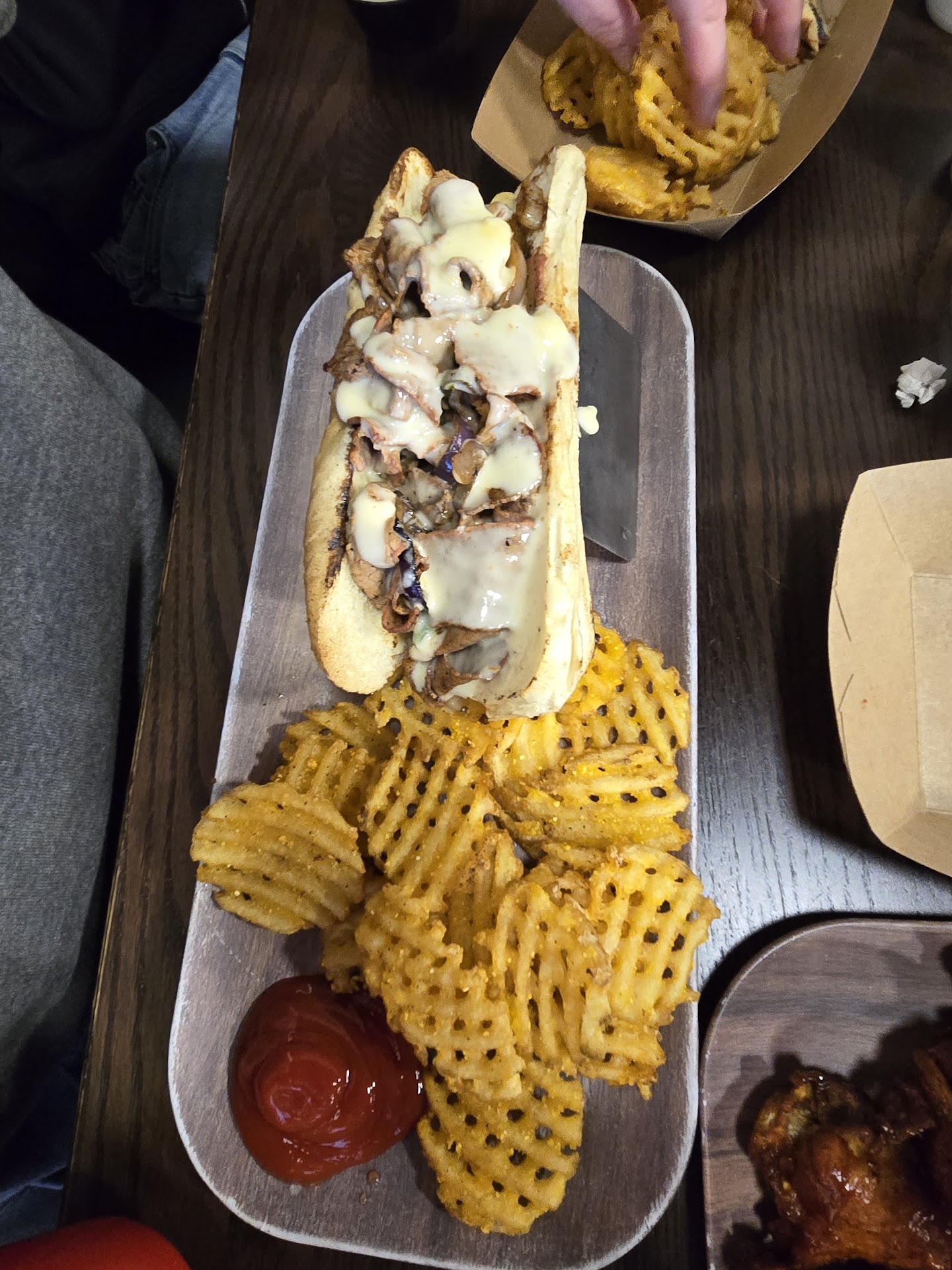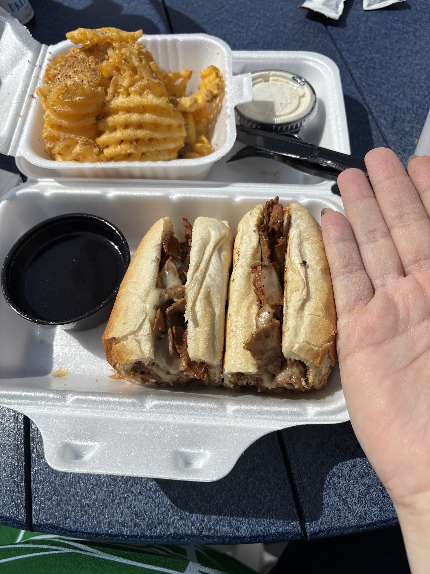 My husband ordered 2 french dips with a drink. It was $45. And we were prompted for a tip- you have to stand at a register to order and they don’t bring it to you- text when ready kind of place. Which isn’t a complaint of mine. I like the efficiency of text to pick up. The sandwiches were mid. The waffle fries were over cooked and chewy. Honestly the price is what really gives me the ick. This was a $12 sandwich, $19 is way too much. Think about it, a family of 4 will need at least $100 for lunch here…at the...