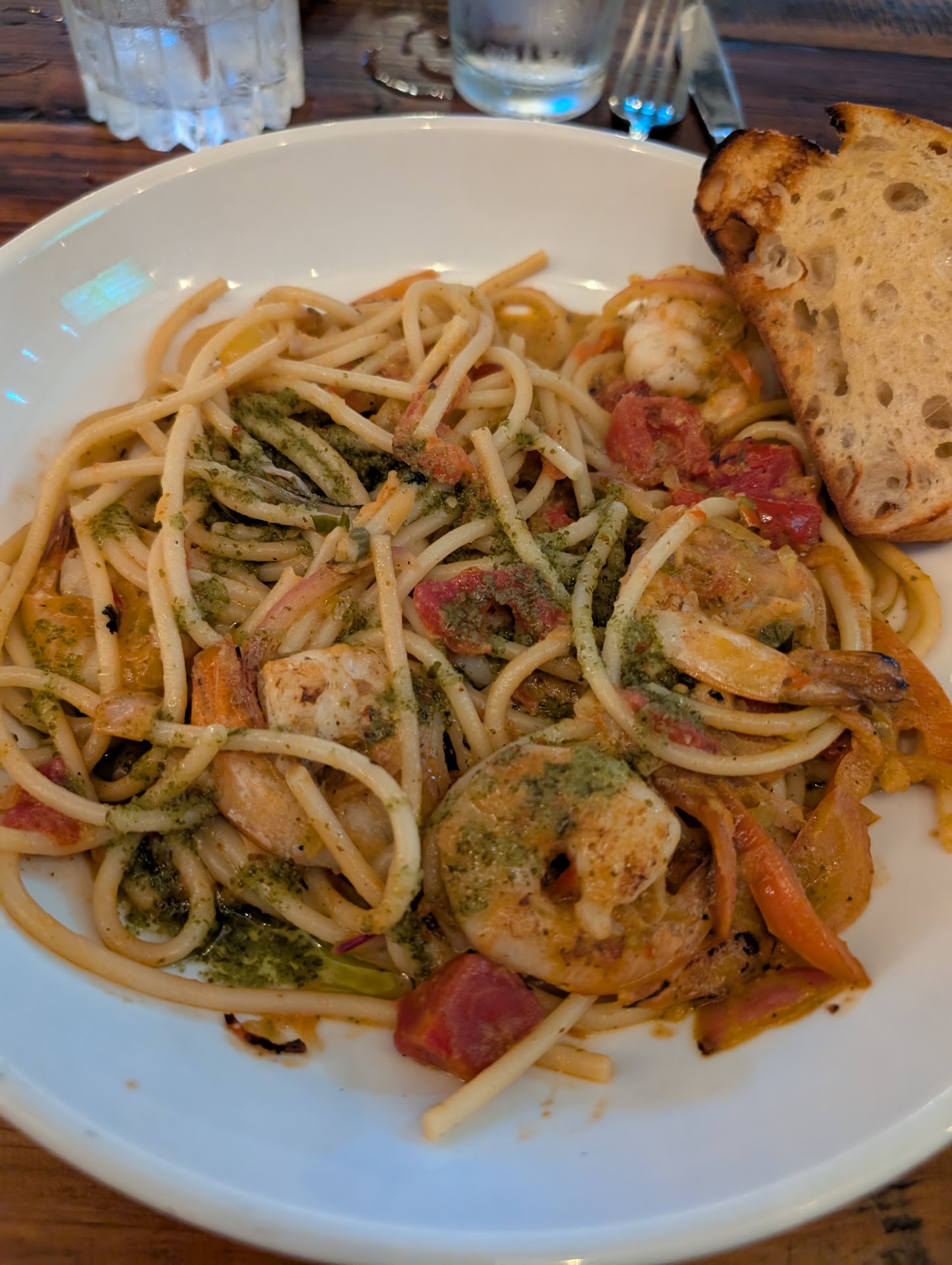 The restaurant was packed but the whole staff was totally on their game. Fast and happy. Not a hint of stress. A laid back vibe and the waitress and maitre d' even had time to chat with folks while doing everything so well and quickly.