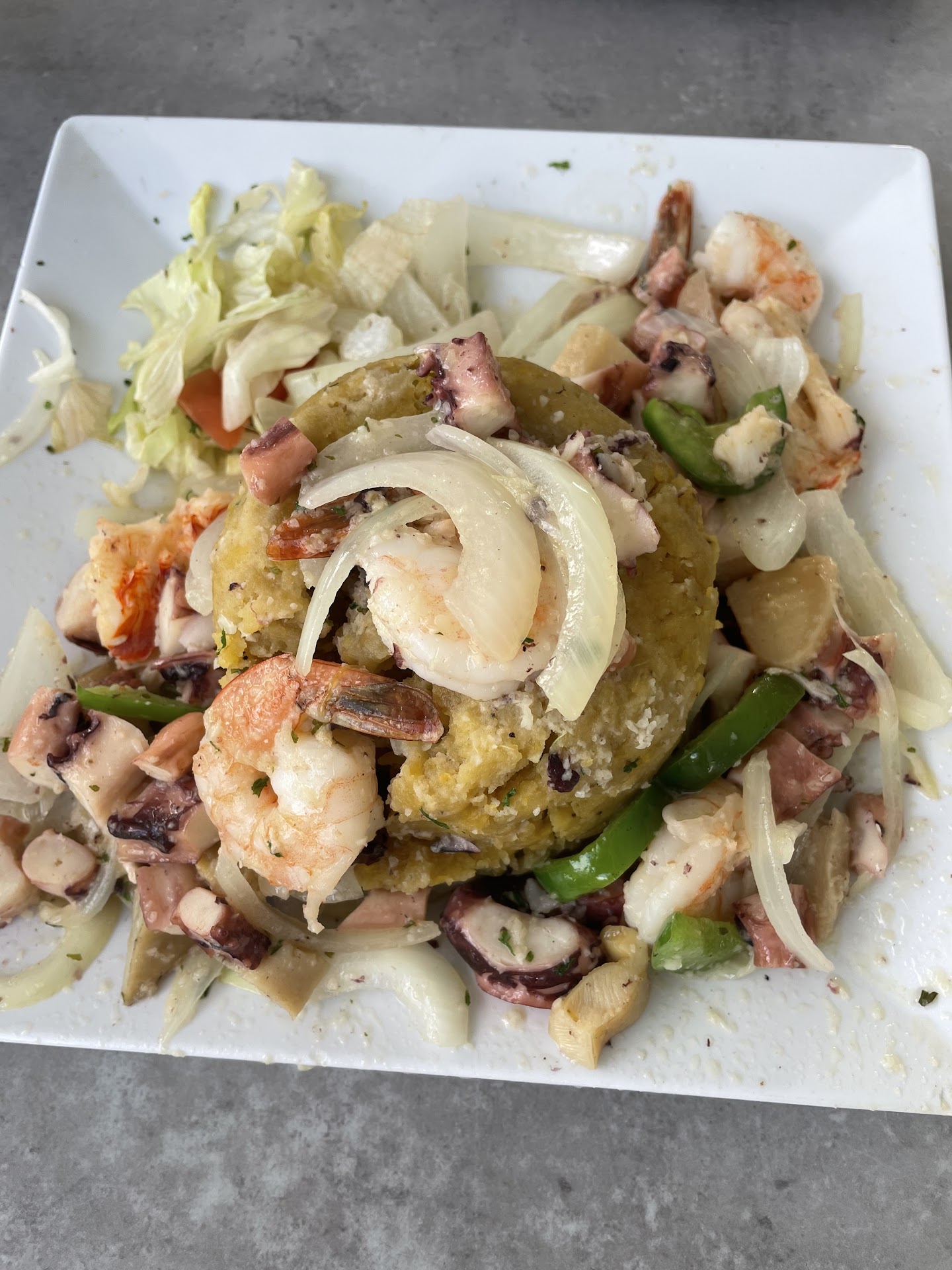 El Coral restaurant is located in Naguabo. The food was good. The plate on the left was a mixto of seafood food with mofongo in a garlicky sauce. The dish-on the right was a spicy crabmeat mofongo dish. I believe the restaurant should disclose that the crabmeat was as not fresh crabmeat but imitation crabmeat. Nonetheless both plates were good. What was unfortunate about this restaurant was the service. Our server was more concerned with eating behind the bar then tending to her guest. She never once checked on us to see if the food was to our liking or to ask if we needed anything else. The salad that accompanied my spicy crabmeat mofongo, was wilted brown lettuce. When I pointed it out to our server she never apologize and stated “I’ll tell the kitchen”. Mind you, it was 5:00pm light dinner crowd and this was our second visit to this restaurant. We ordered a beer and glass of white wine…. 15 minutes pass, we look up and she’s behind the bar just chilling…. and only then did she bring us our drinks which were just sitting on the bar. So, although the food was good, my hubby and I won’t return due to their consistency with...