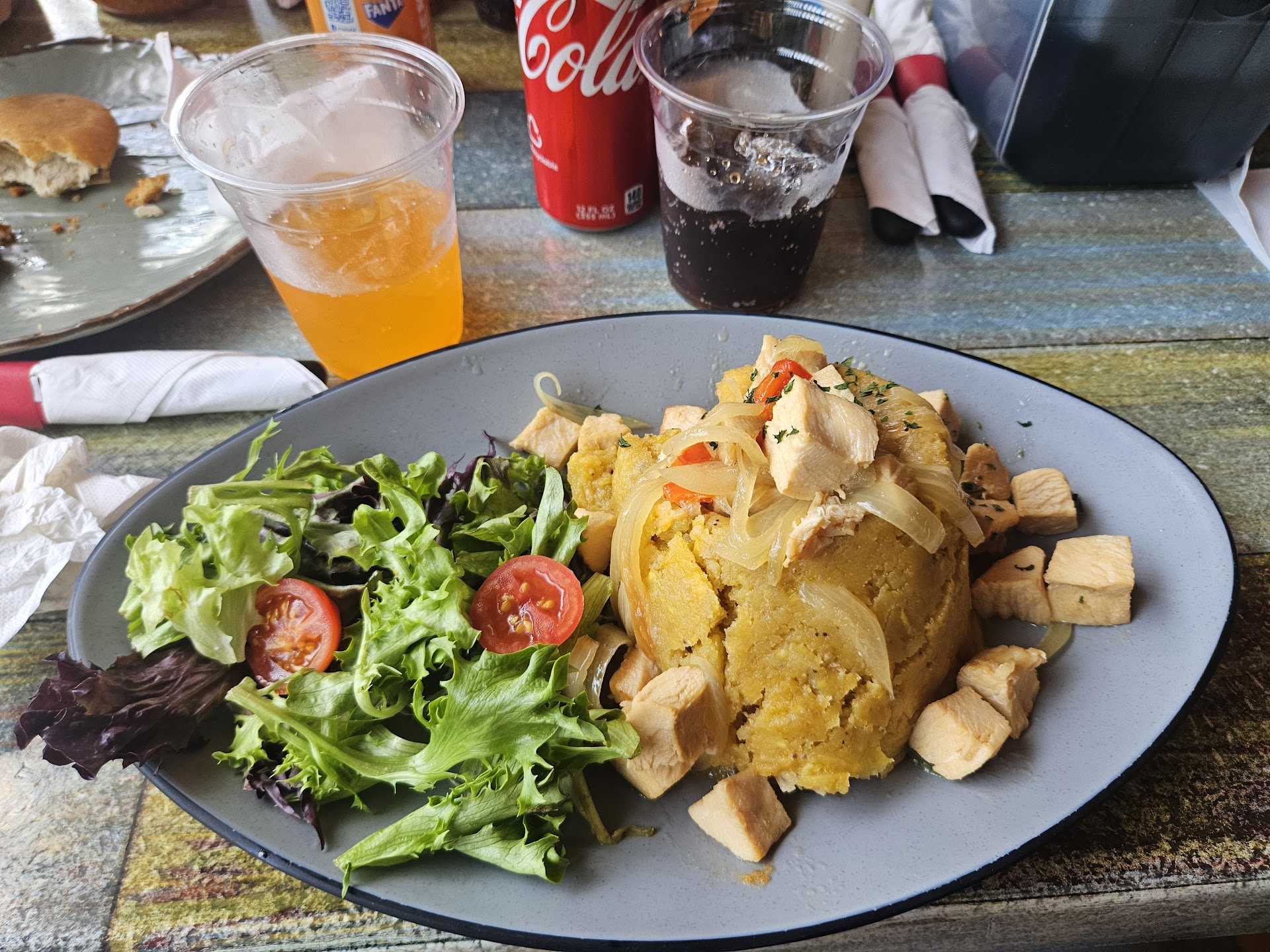 Read moreExpensive and subpar food. See the picture for yourself. Total bill was $125.00. There were 2 families at this restaurant including ourselves. Server was non-existent. My husband’s seafood mofongo had maybe 3 shrimps, a tiny bit conch and tons of onions and the salad was old. My dad’s shrimp soup had also at the most 5 shrimp and was boring looking and tasted mostly tomato. My mom’s fish was good, but her side salad never came, which was good considering how old the salad was. The server said, “We didn’t charge you! We said, you didn’t bring it! She replied, we didn’t charged you! 🤦🏽♀️
