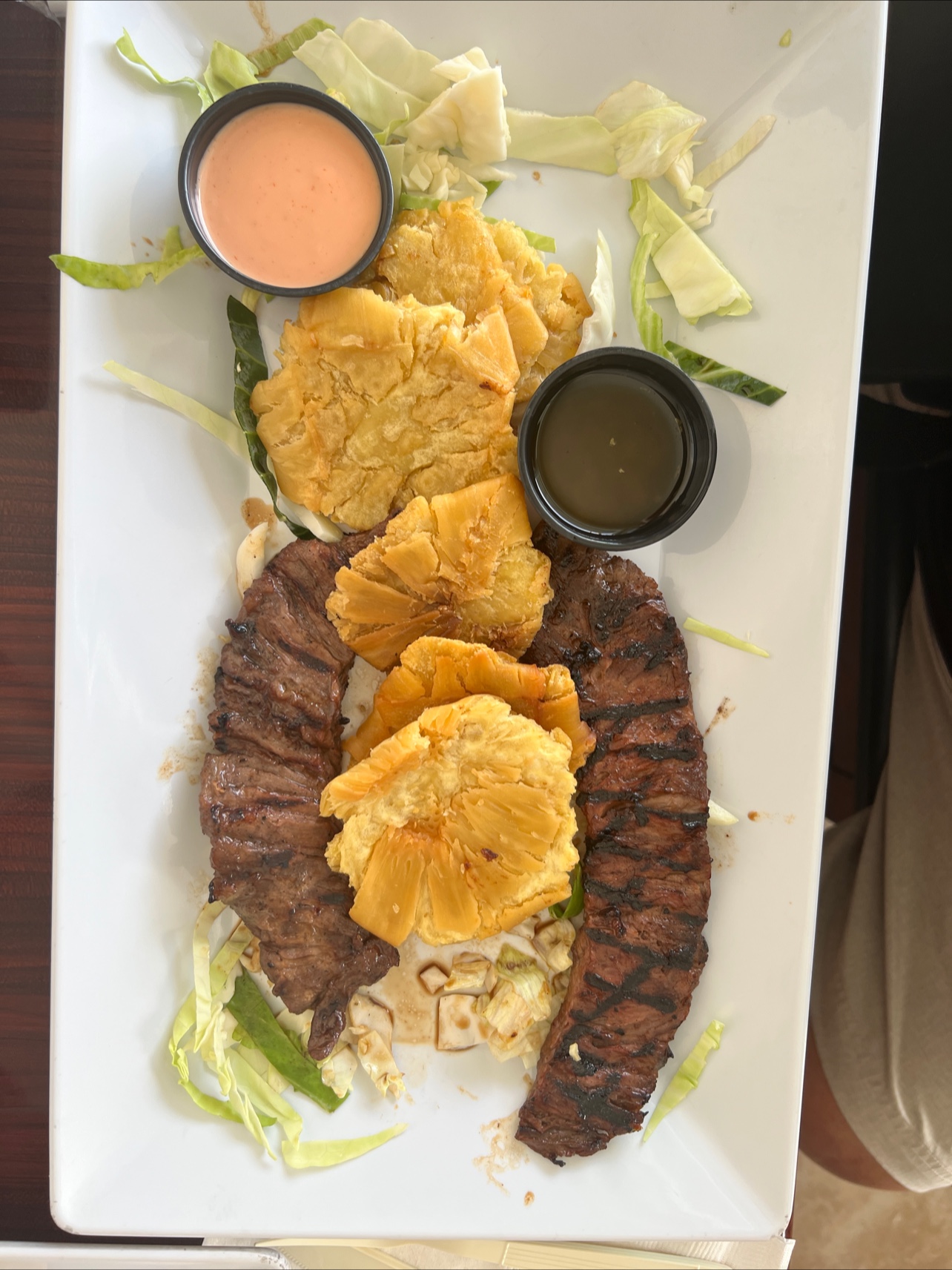 Read moreGood tasting food, but restaurant ironically, lacked ingredients, which for the price of the food, there's no excuse. I will start off with mojitos, they didn't have any because they "didn't have the mint leaves". Food took about 30-35 min to arrive. My order tasted great and lacked nothing, but my friend ordered mid-well skirt steak with fried plaintains, and they brought it burnt-well done and it looked like they ran out of plaintains because they got her only 2 fried plaintains and 1 fried panapen. She said it definitely wasn't worth the price, and she was hungry so we didn't return it (it didn't taste great). We did ask for the plaintains, but what they brought looked like it was dipped in oil rather than being fried. My dad ordered rice and beans, and i could count about 7 beans... i mean really!? We asked for more, and they brought another bowl with 10 beans more... we basically paid for bean broth rather than the beans. Took them like 10 minutes after food arrived to give us our drinks, mind you, the restaurant only had like 3 family groups, so they weren't full. Close to finishing our food, the other family got mojitos served O_O about...