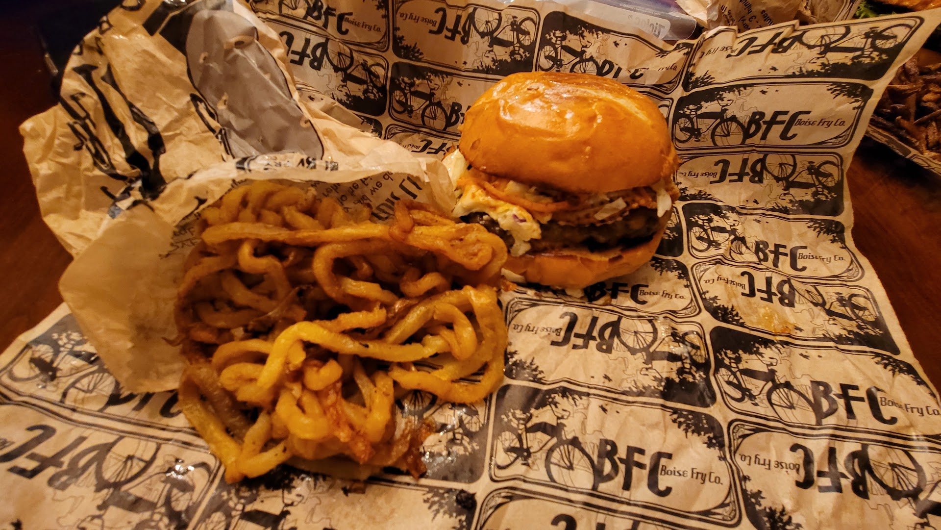 Fast forward to the food coming out. Boy, we've never had burgers and fries that were soooooo bad from Boise Fry. The fries were soggy and tasteless. The burgers were poorly assembled and everyone in the party was really let down. My husband commented that the best thing about the burger was the pickles. He was working hard to hunt the good stuff.