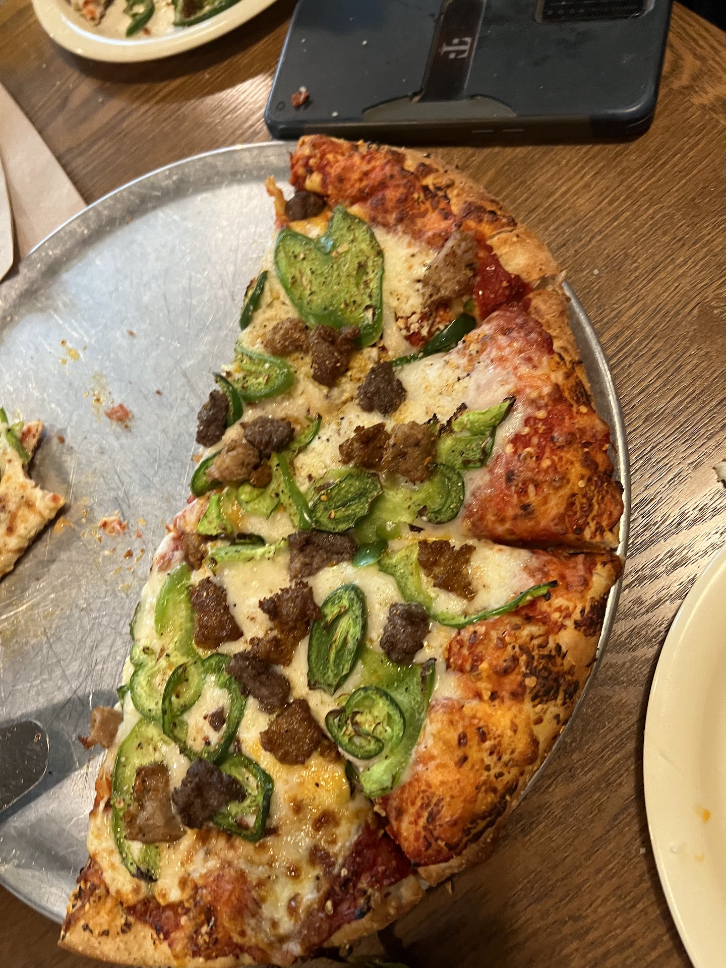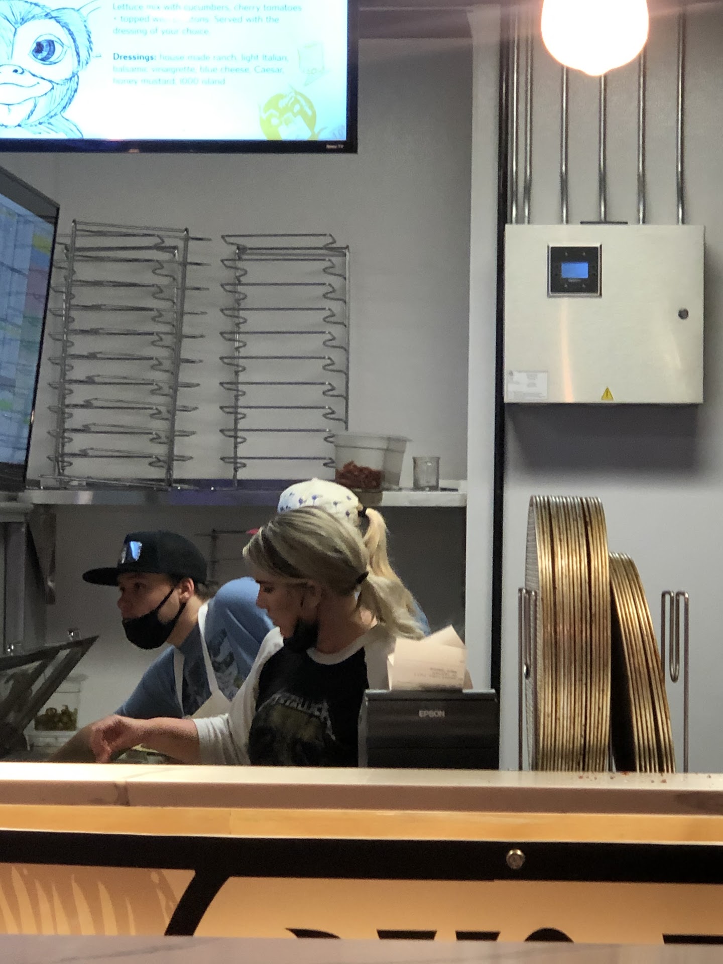 Ā Ā Ā Read moreCustomer service was HORRIBLE. We felt very unwelcome from the moment we walked in. The guy behind the counter, early 30s, clean shaven, semi curly brown hair, baseball hat on backwards, glared at us as we walked up to order. I thought by his attitude maybe they were closing soon, so I asked what time they closed. He rudely said, ā40 minutes! But it takes 20-30 minutes to cook it!ā I said well, we are getting it to go so thatās fine. My Aunt friendly stated what toppings she would like and he snapped at her and said, I canāt get anything started until I know what size you want! My aunt had already said the size, but the music was so loud I guess he didnāt hear that. But, regardless, he had no right to speak to us like that. We were being very kind. My aunt was having a little trouble with which way the credit card was supposed to go in the machine and he became super impatient and was extremely rude to her. After the transaction was complete, we walked to the bar area to sit down, and I noticed one of the chairs was wet, and I told my aunt not to sit on that one. I wasnāt complaining or anything. I guess the guy heard me say that and snapped at me saying, YEAH, THATāS BECAUSE WE CLOSE IN 30 MINUTES AND WE WIPE THE BAR DOWN EARLY! We went to sit somewhere else because he made us feel bad for trying to sit there. Later when he brought us our pizza, he didnāt say a word and was very unpleasant, not smiling at all. We felt as if he just wants us out of there. As we were leaving, we said thank you as he walked passed us. He looked straight ahead and didnāt acknowledge us at all. We originally wanted to dine in, but felt so taken aback by his unprofessional rude behavior, that we ended up eating in the car in the parking lot instead. I have NEVER been treated so poorly by a restaurant employee in my life. The pizza was actually really tasty, too bad the customer service didnāt match the quality...