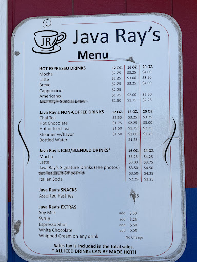 Read moreAmazing coffee. Great service. I have not had coffee for awhile. After I got a cup of the blended mocha. Ohhhh I cannot begin to explain how delicious it tasted. The price was great. Ray is a wonderful guy. Locally-owned and Locally sourced beans. Who would go to Dutch brothers, or Starbucks when you got Java Ray's. Made my coffee better then any coffee I've had from those corporate owned, high prices. Definitely will come back here but I'll be bringing...