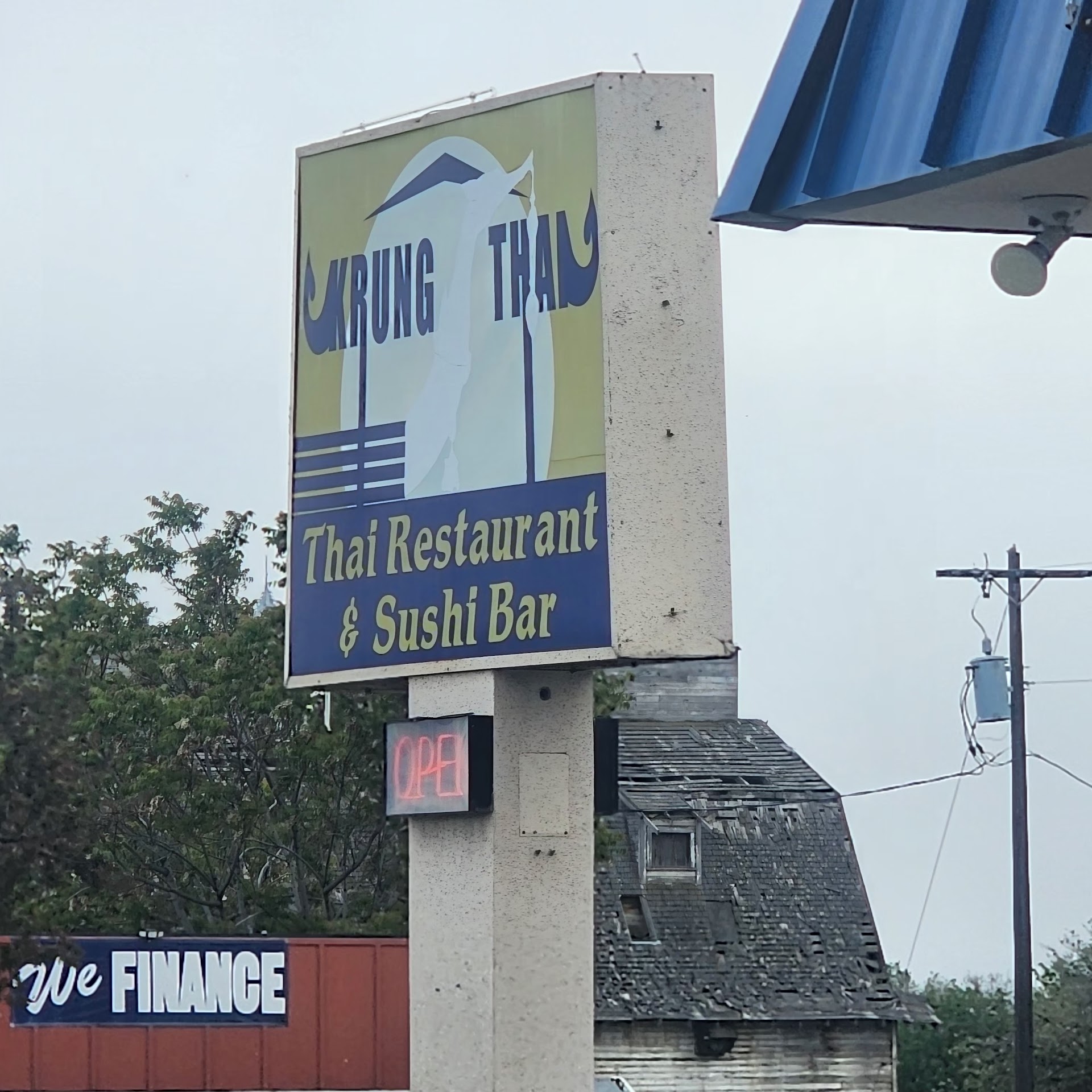 Read moreI loved this place! We've recently moved here from Washington, and I've been craving Thai food, and found this place. I saw all l the reviews and I have to agree, Krung Thai is a great hole in the wall!! We came in around 4pm and were the only ones there, which worried us but decided to still stay. The Asian lady that greeted us was friendly and approchable. The place was...odd, but to be honest, once she came out with the salads, bombs could have been going off and I wouldn't have noticed! My hubby usually hates the ginger dressing but thiers was a mix of peanut and ginger and had some heat to it, and he said he could have just had that for his meal and be happy! As for me I wanted to lick my plate, never was I so sad to see a salad finished. As for the rest I had the pad Thai chicken heat lv 2 (wonderfully thick and moist and full of flavor, though noodles were a little over done,I didn't mind but hubby like his more firm. Also I think I'll go up a heat lv, cuz it was a little too sweet, but that might be cuz I kept eating my hubby's curry!!) and my hubby had the red curry chicken heat lv 2 ( perfect! Theirs had fresh green beans and he fell in love with them. I thought the bell peppers needed a minute or two more of cooking but that just me and the eggplant was perfectly cooked.) Both our meats(chicken) ended up being tender and not dry, which considering how thinly sliced they are can be a challenge for some. Oh I also ordered the California roll, which was done well, everything looked and smelled fresh. Next time I'll actually get some sushi sushi( I like to check a place out before I order anything raw. Kinda my rule of thumb lol.) Overall, we loved them and will be coming back. It's kinda sad that they seem to not have much business, even taking into account the time we got there, the place looked abandoned!! We almost drove right by until I saw the sign that said open!! So make sure you double check, and come in for some amazing Thai food!! Oh yeah and all that with our drinks was $37 plus a tip, not bad. But that might be because I'd have...