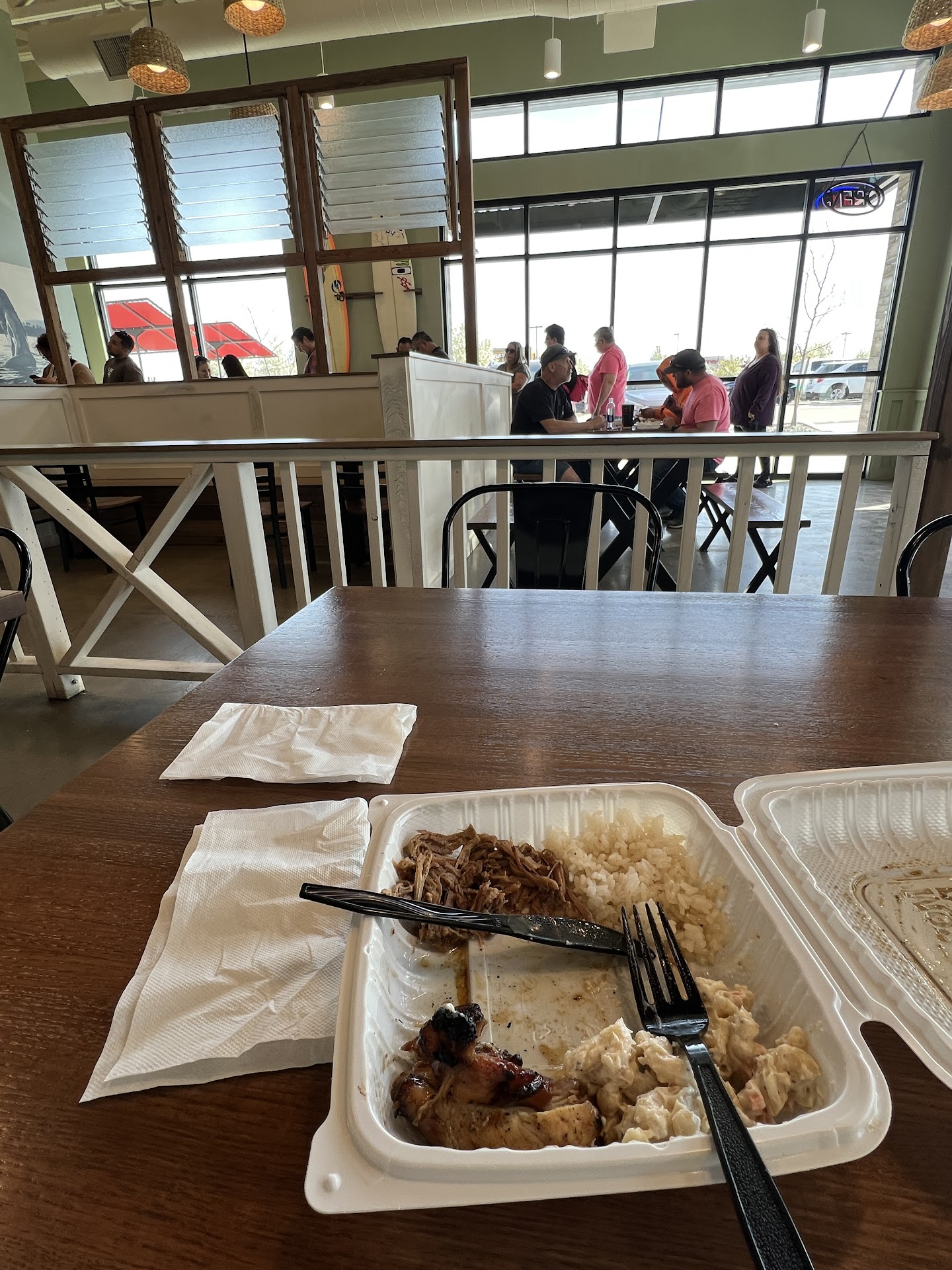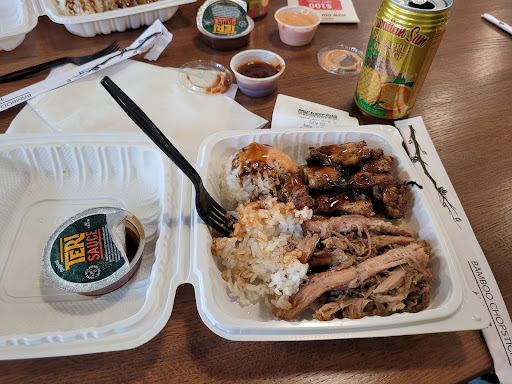 Read moreFood: rice was okay. Would have been nice to have some aloha shoyu to go with it. Mac salad is not Hawaiian Mac salad. It is bland and tastes of macaroni and Mayo. Nothing else. As someone who lived on Maui. This is what I was hoping would be the best. But it’s a let down. The kalua pork is waaaaay too salty. Is not supposed to be that salty. No flavor. Just salt. Also way too much grease and oil in the pan. Legit like 2 inches of oil floating above the meat. Teriyaki chicken was alright. Some sauce would have been nice. Never did get my sauce cups. As a whole, the food might fool some haolies, but it’s falling short. Amount of food was okay. Maybe do less rice and more Mac salad if you actually start doing Hawaiian Mac salad Also what’s deal with no loco moco