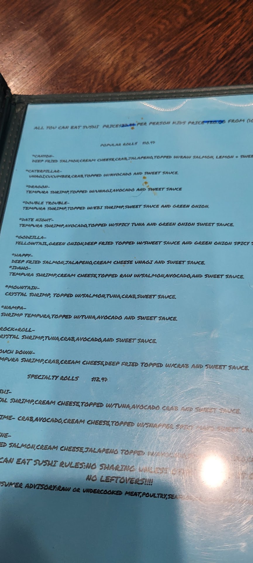 Read moreIm not usually one to complain that being said , I didn’t say anything to staff. If I could give this place a negative star I would! First off the waitress set down water glasses and said “soda machine down this is all I have” no offer of anything to compensate, then accidentally spilled my water, the waitress looked at me scrambling to clean it up and ignored the issue completely never any offer of assistance at all. At that point we should have got up and left but decided to give it the benefit of the doubt. Ooooh goodness were we wrong! The sushi (of you can call it that) was by far the worst food I have ever eaten. The avocado was brown (I get it oxidation but cmon’ it’s a restaurant) the sushi was dry and had a god awful smell and a nasty sugar sauce on everything. We ate very little and were ignored by our waitress the rest of the time. Upon payment she tried to add her own tip to the bill but didn’t do anything to earn a tip. Anyone who says this food is good is broken. I will never again visit this establishment. My only regret is not asking for a refund (which was and is totally justified) please, fix these issues...