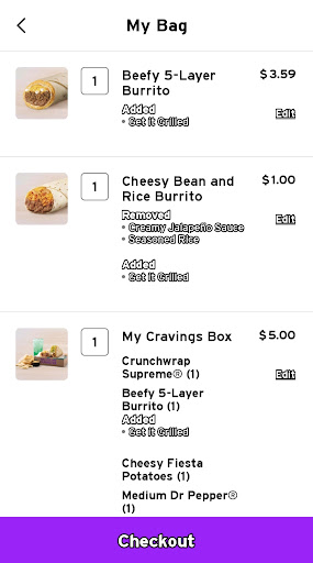 Read more(🌮🔔208 Mall ok?) TB App, stopped taking credit cards months ago. Employee said he'd also given up using app. Tried new CC on a Tuesday drop deal. Two things came to mind no sour cream as advertised, and "where's the beef?" Is there any Hidden under the lettuce?